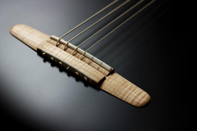 For the Flamme I have again used the open headstock of the Maestro and reshaped the teardrop decoration to represent a flame. The top can be made of either spruce or cedar. This model offers me greater aesthetic freedom to create, for example, a fingerboard using figured ebony or a black-dyed guitar with a maple bridge… Going forward, I am only going to produce two models: Alkemia for classical and Flamme for acoustic.