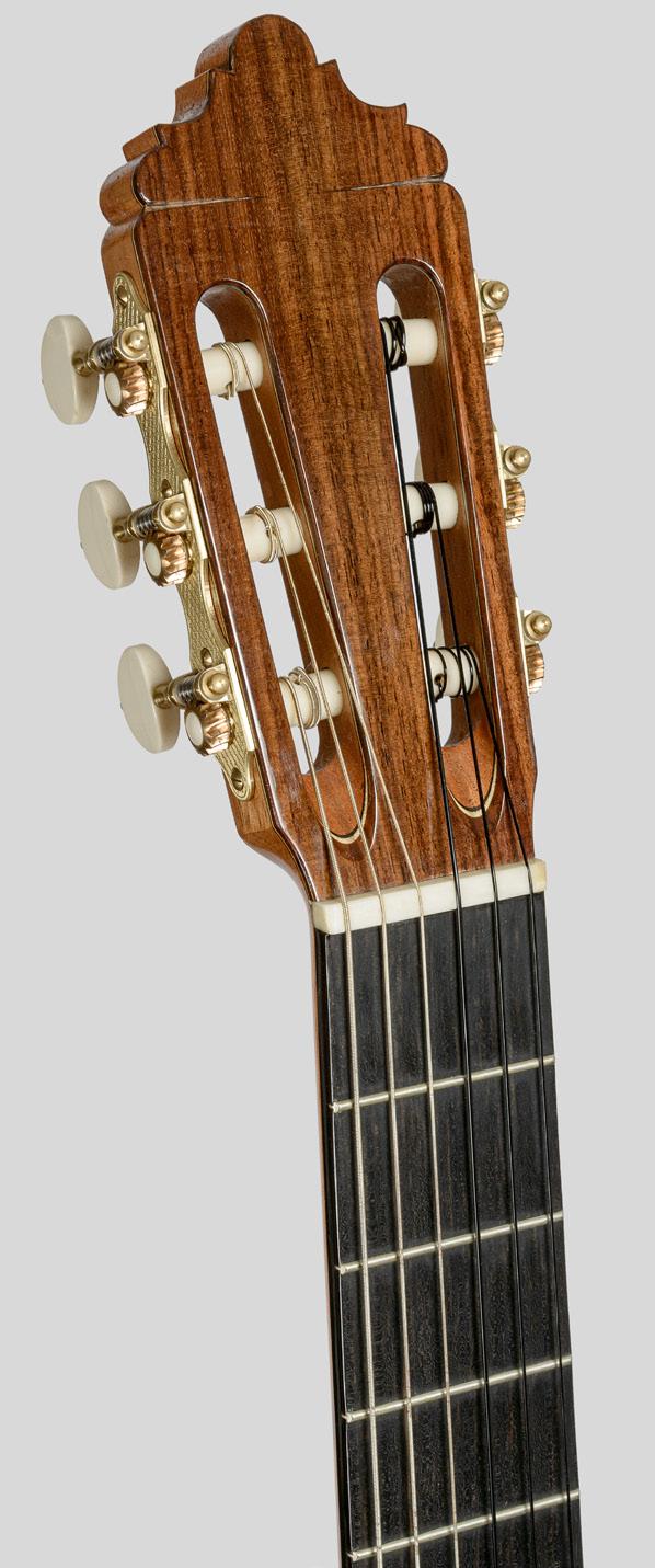 Su varetaje usual para las guitarras clásicas. Los aros están reforzados con pequeñas láminas de caoba.