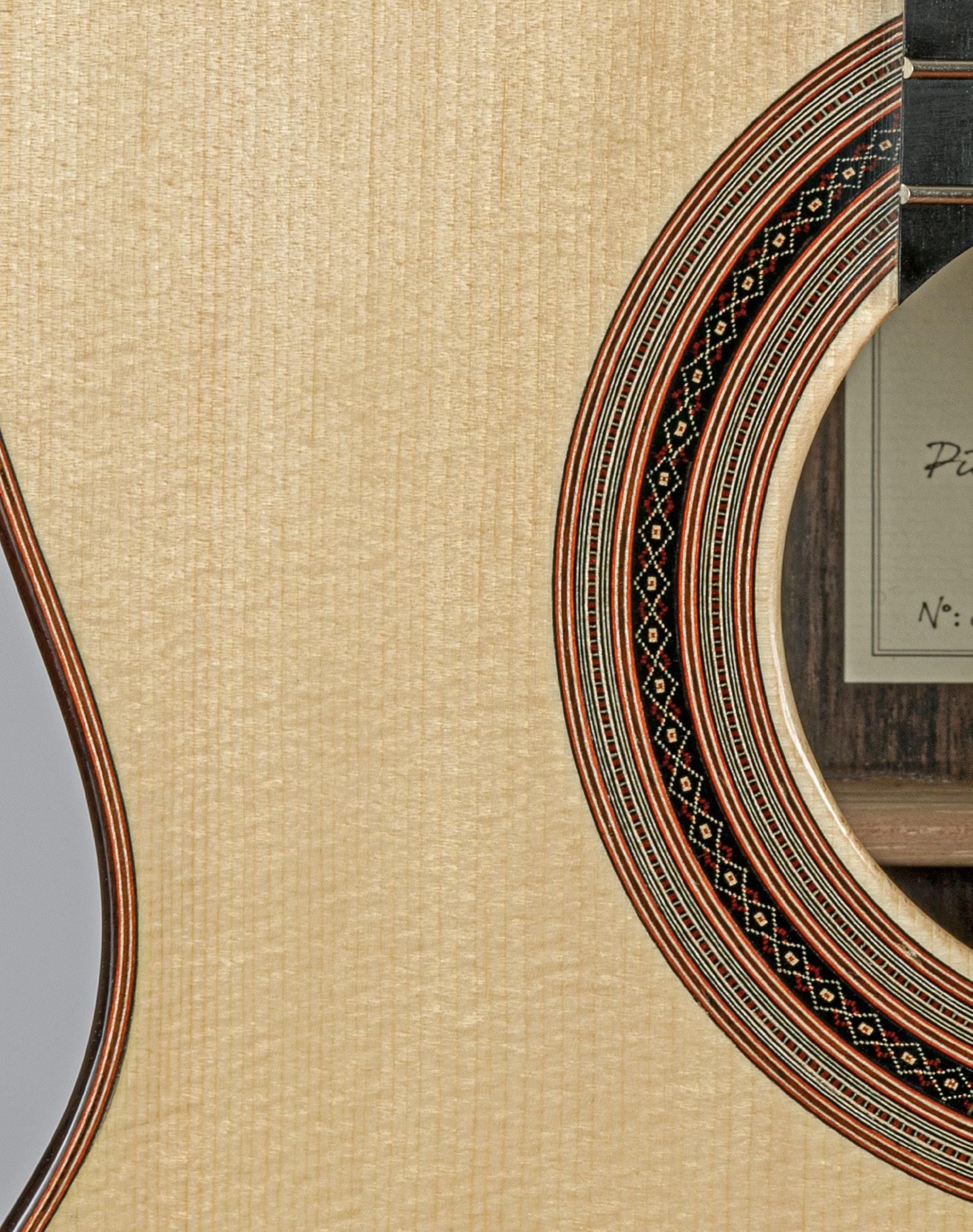 La segunda razón es que el siglo XIX es la época de la revolución industrial y comienzan a verse máquinas capaces de hacer chapados de 1 mm. Finalmente, esto permite realizar economías y utilizar abetos de menor calidad. Cuando se observa el interior de esas guitarras, se ve claramente que la madera de chapado presenta pequeños defectos, pero sin gravedad. Para mí, lo mas importante es tener una caja rígida para focalizar mis investigaciones y mi trabajo en la tapa.
