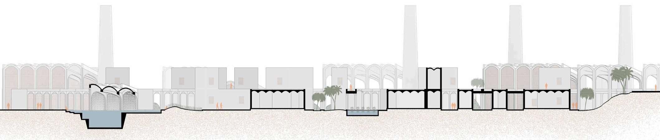 Subterranean Currents [Phase I] tackles the challenge of sustainably inhabiting arid frontiers through a case study in Egypt’s Bahariya Oasis. The project proposes a prototypical subterranean settlement sustained by a circular water network that combines extraction from the Nubian Sandstone Aquifer with atmospheric condensation systems.