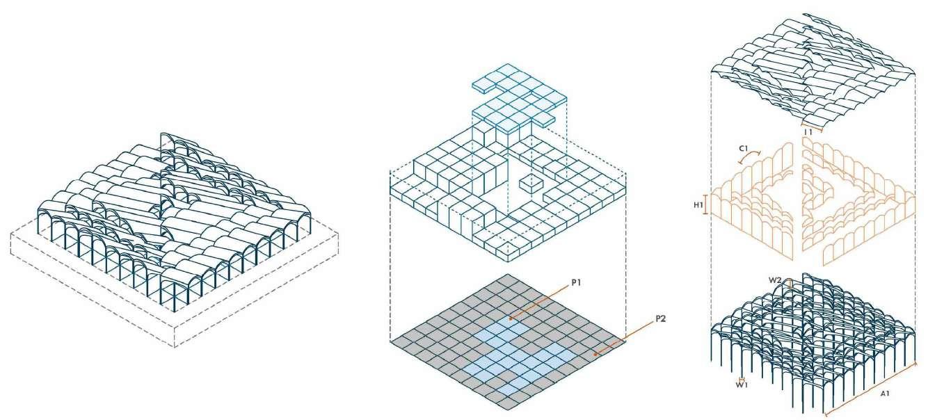 A parametric, adaptable framework recalibrates the settlement in response to qualitative objectives, including thermal comfort, humidity regulation, visibility gradients and acoustic performance. Each metric is assessed individually, then integrated through an iterative algebraic process using network-based computational logic to correlate performance across the urban system.