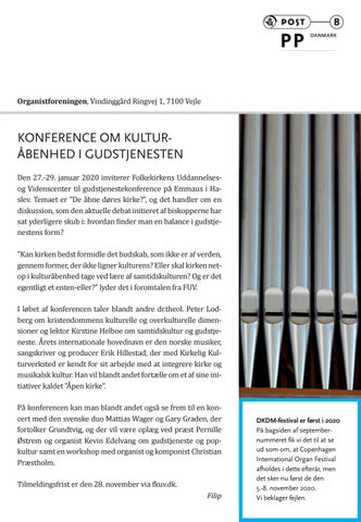 DKDM-festival er først i 2020 På bagsiden af septembernummeret fik vi det til at se ud som om, at Copenhagen International Organ Festival afholdes i dette efterår, men det sker nu først de den 5.-8. november 2020. Vi beklager fejlen.