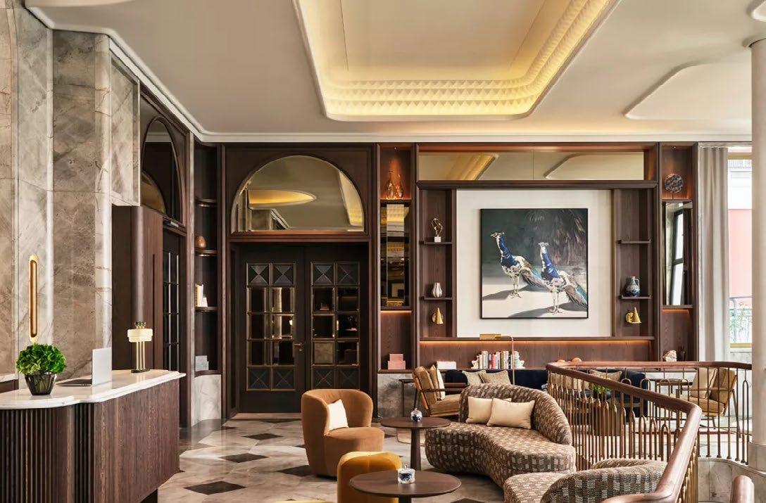 Bernerd cho biết: “Các thiết kế của chúng tôi dành cho phòng khách rất nhiều lớp, để nhấn mạnh cảm giác như đang ở trong dinh thự riêng của bạn ở trung tâm khu phố cổ Munich, với sự sang trọng nhẹ nhàng, thân thiện,” Bernerd nói. “Mặc dù có rất nhiều sự khác biệt giữa các phòng, do hình dạng của mặt tiền nguyên bản, tất cả các phòng đều có kích thước rộng rãi, với ghế sofa riêng biệt và khu vực tiếp khách giống như Junior Suite. Đồ nội thất trong phòng được thiết kế để nhấn mạnh cảm giác như một ngôi nhà xa nhà. Trong các dãy phòng, một tủ sách bằng gỗ ngăn cách một phần căn phòng một cách tinh tế, với sự kết hợp giữa gỗ, kính và các cánh sơn mài màu xanh lá cây, được trang trí bằng tuyển chọn các loại sách và đồ vật nghệ thuật”.