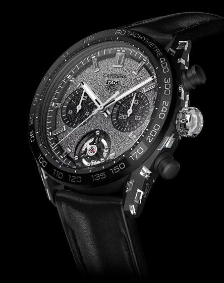 120 AUDEMARS PIGUET Royal Oak Perpetual Calendar 122 BVLGARI Octo Finissimo Tattoo Acqua Limited Edition 124 BREGUET Reine de Naples 8918 126 CHOPARD Mille Miglia 2022 Race Edition 128 FRANCK MULLER Vanguard Rose Skeleton 130 HUBLOT MP-09 Tourbillon Bi-Axis 5-Day Power Reserve 132 JACOB & CO. Flight Of CR7 & CR7 Baguette 134 MB&F Legacy Machine Flying T “Ice” & “Blizzard” 136 MIDO Baroncelli Lady Necklace 138 RICHARD MILLE RM 07-01 Intergalactic 140 TISSOT Lovely Square Festive 142 TAG HEUER Carrera Chronograph 144 VACHERON CONSTANTIN Égérie Self Winding & Égérie Moon Phase