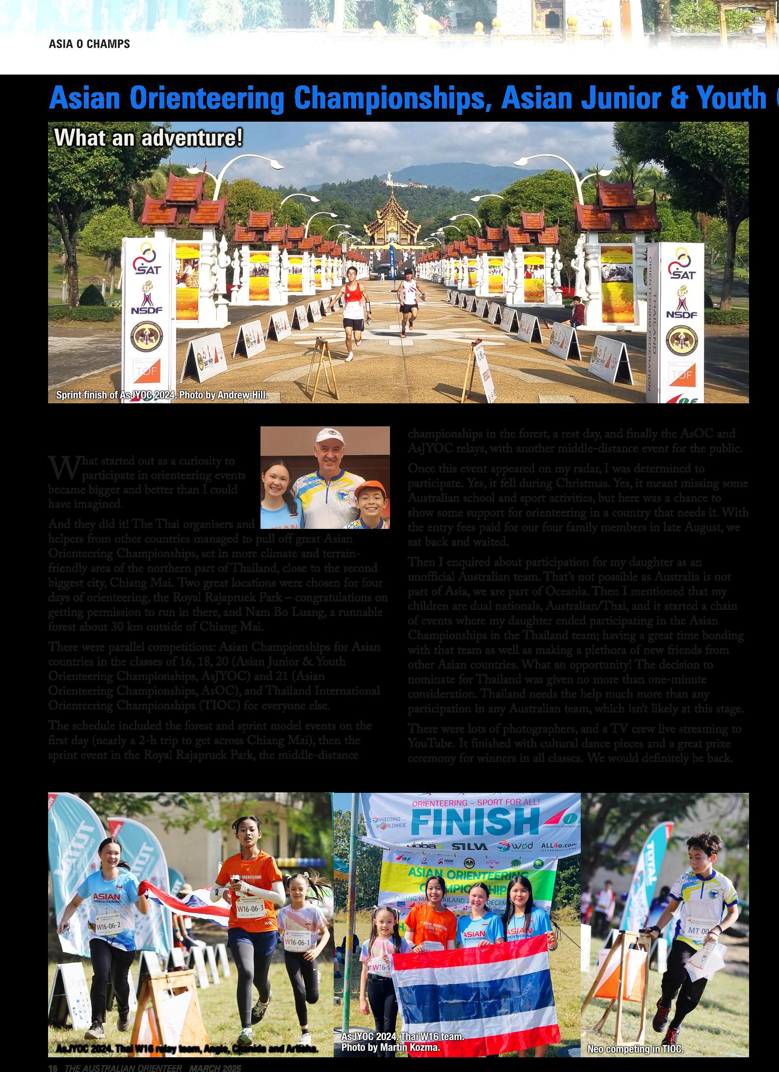 I am writing this column having just returned from the Oceania Championships 2025 in New Zealand, the championships were a fantastic set of events. I found getting back among the sand dune terrain that New Zealand is renowned for, was a great orienteering challenge as I imagine the many Australian orienteers who made the trip did so too. For our senior elite competitors at stake was a personal place at the World Championships 2025 in the long distance and middle distance formats. New Zealand’s Lizzie Ingham and Zefa Fa'avae made it a double to take those places. Congratulations to both. The home nation also proved too strong in the Australia New Zealand (ANZ) Challenge held as part of the championships. Our Australian competitors in the ANZ Challenge looked resplendent in the new competition tops for such teams. Thank you to our High Performance Management Group for getting this impressive-looking kit organised for our team. The championships was also the opening round of our 2025 National Orienteering League (NOL). Orienteering Australia extends a sincere thank you to Orienteering Wellington, the orienteering clubs of the lower North Island of New Zealand and Orienteering New Zealand for their fantastic work in putting on the event. On the home front we are gearing up for another great year of orienteering. The next round of our national league will be hosted by Orienteering Western Australia. The Board is supporting competitors from the eastern states to attend this round. The Board is examining ways to further support competitors to attend NOL rounds in general. From a national perspective we have our Australian Mountain Bike Orienteering Championships in Western Australia, the Australian 3 Days at Easter in Victoria, and the Australian Championships in Queensland this year. In addition, all our state/territory members and their affiliated clubs have a big program of events for all levels of competitive interest. Make the most of what is on offer to get your regular orienteering fix.