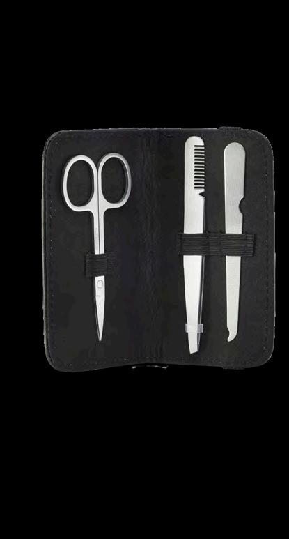 Kit de Aseo para Él Essential Acero inoxidable y PU. Estuche: 11 x 6 cm. Lima de uñas: 9.2 x 1 cm. Pinzas: 10 x 1 cm. Tijeras: 9 x 4 cm.