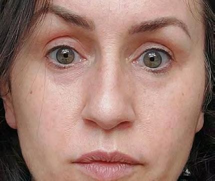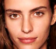 Modelo maquillada con: Labial Icónico 42171 Soft Rosewood y Corrector y Sérum Potenciador 41107 Light. Aplica