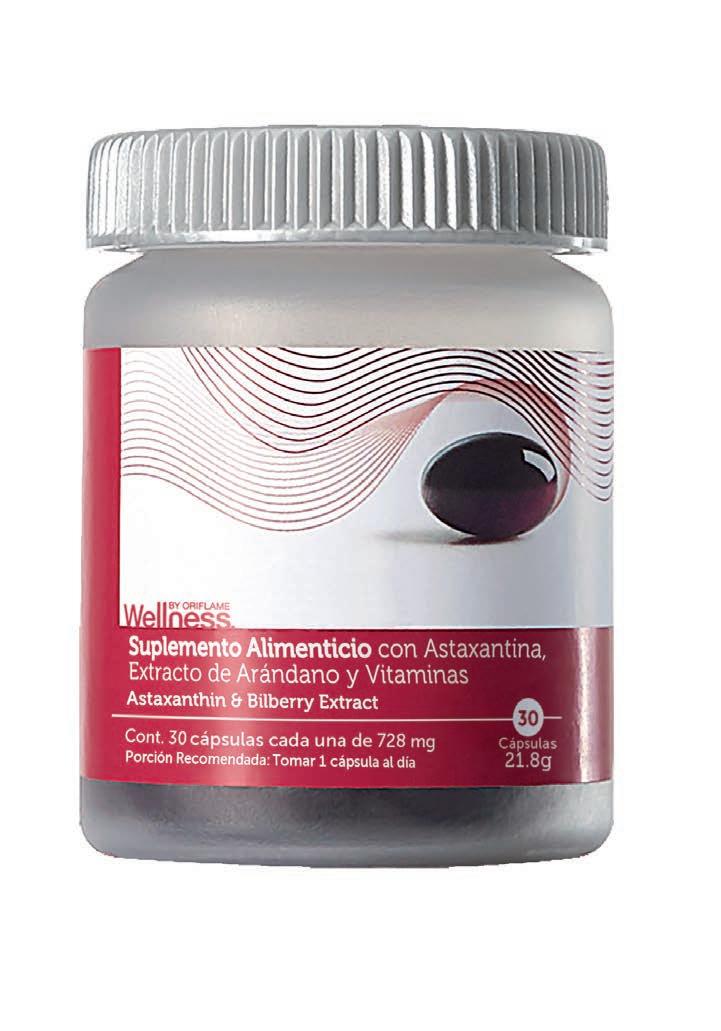 1 Cápsula de Suplemento Alimenticio con Astaxantina, Extracto de Arándano y Vitaminas.