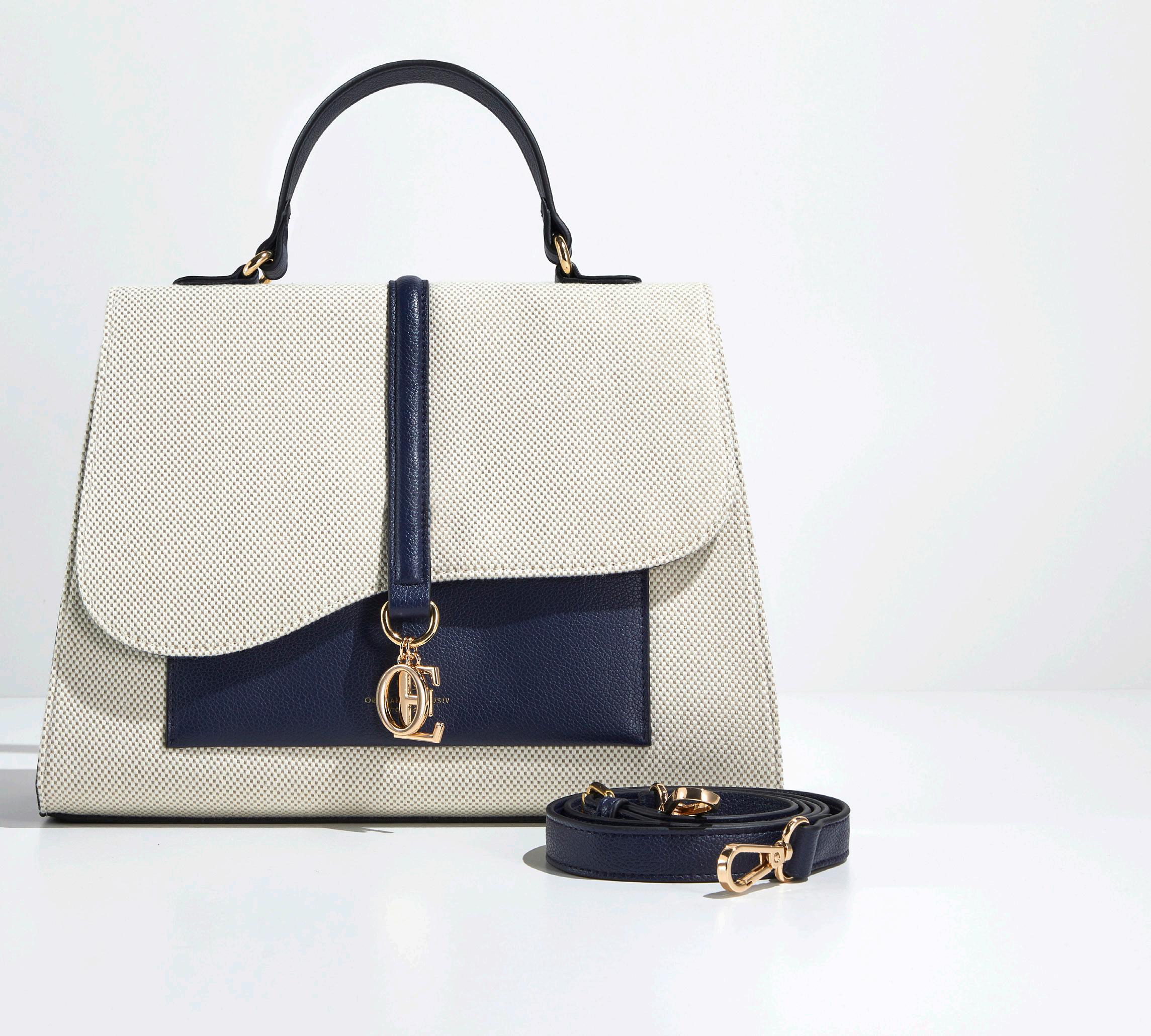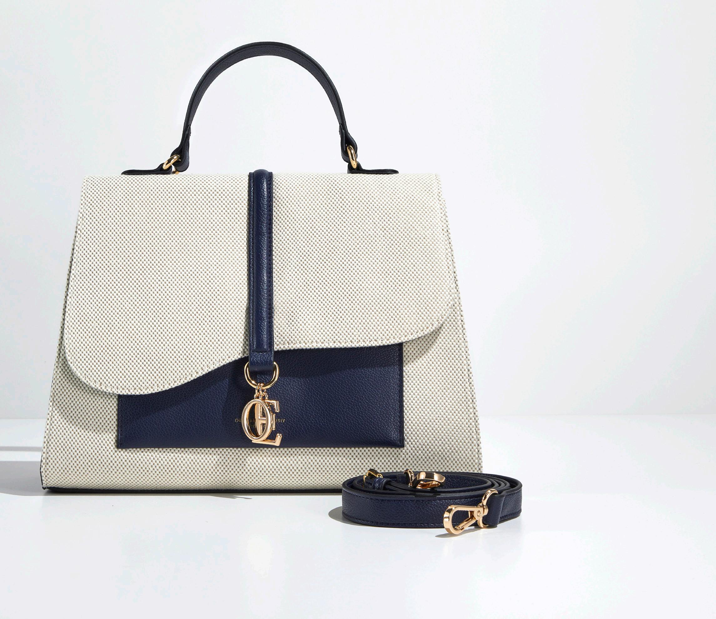 Diseño elegante y atemporal, con asa superior y correa ajustable y desmontable. La solapa curva se cierra sobre un bolsillo delantero y el interior incluye dos bolsillos abiertos y uno con cremallera.