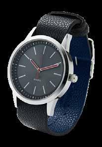 Aleación de zinc, vidrio, latón, acero inoxidable, cuero sintético (PU). Mecanismo Seiko. Diámetro de la caja: 4 cm. Longitud total: 24 cm.