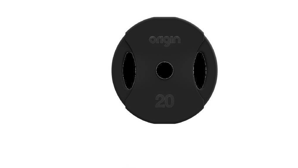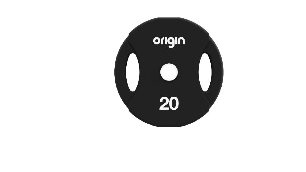The Origin Olympic Urethane Weight Plate has a double handle design for improved functionality and easier handling.