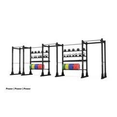 The Alpha Flat Storage has been designed for multi-functional spaces with flat shelving that can also accommodate kettlebells and slam balls for smaller spaces.