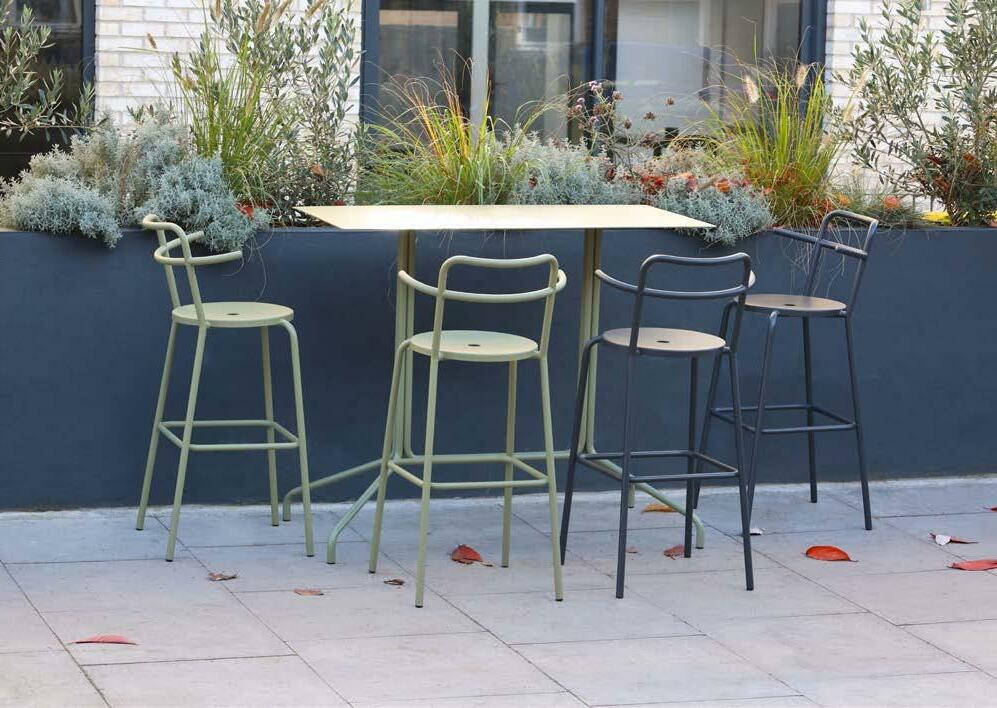 The Vine collection consists of a broad range of steel tables designed specifically to compliment Contour, Origin’s outdoor seating range. The construction marries a thin steel top with a bold tubular leg design inspired by organic forms. The range is well suited to outdoor environments using the latest protective primer and powder coating technology. The collection is available in 5 different colours and is ideally suited for gardens, terraces, cafés, and outdoor office areas.