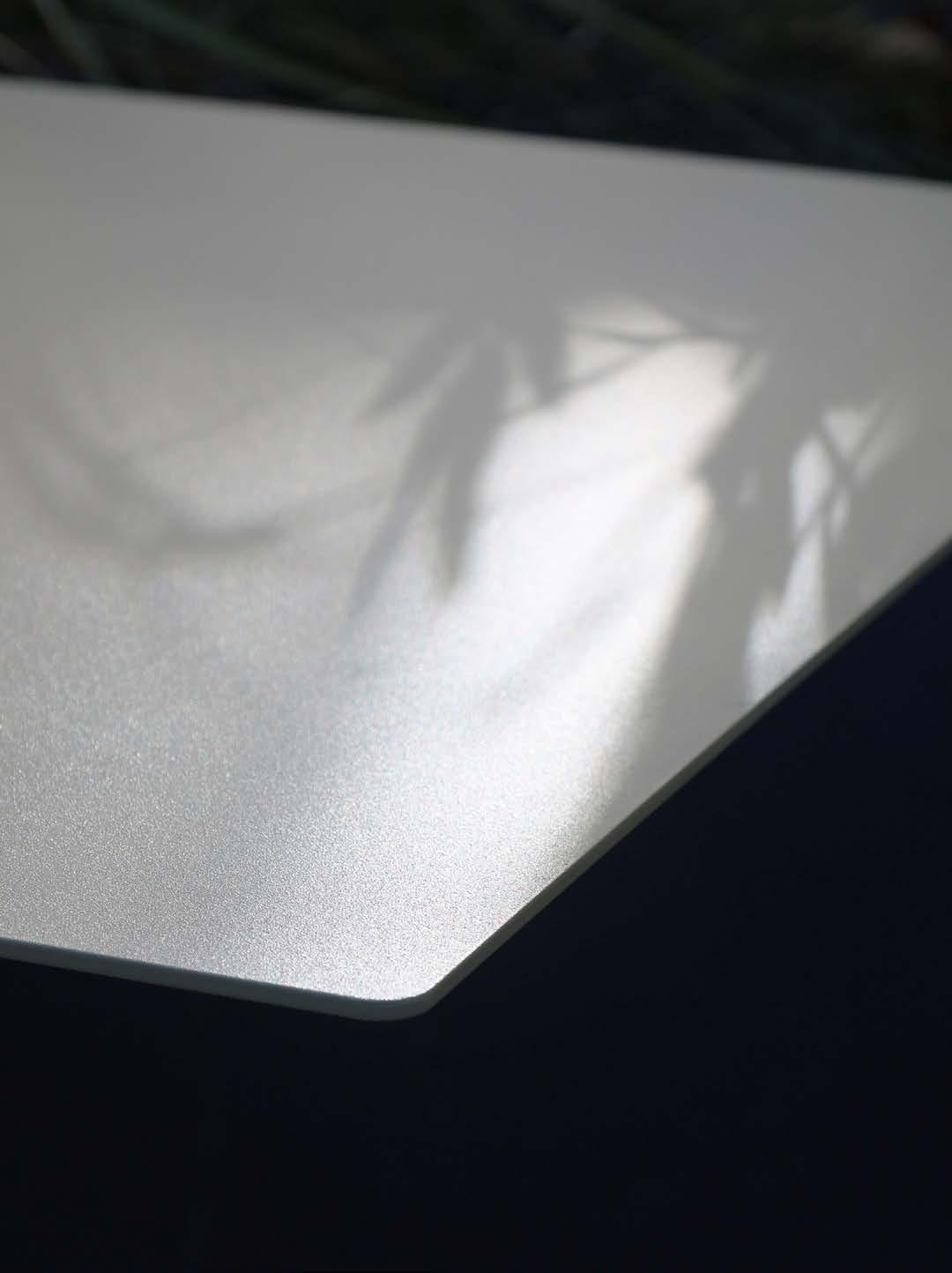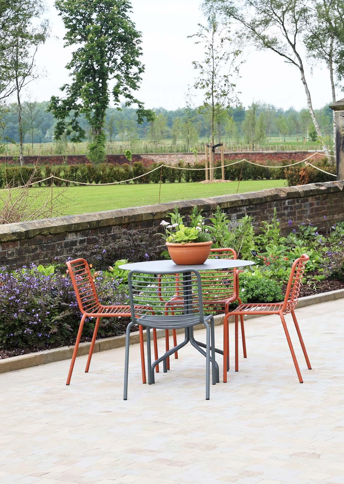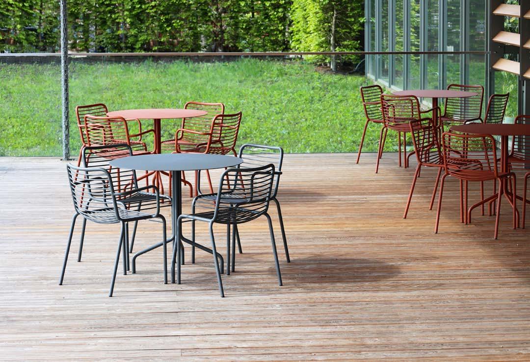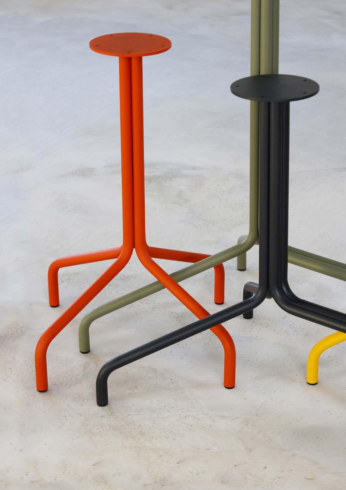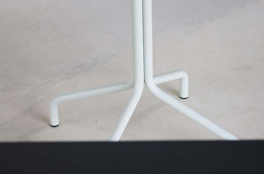 The aim was to maintain the sole use of steel throughout the products. Providing material continuity between tables and chairs ensuring a consistent aesthetic, durability and colour options. Mono-materiality also makes recycling products at the end of life more simple, with steel being the most recycled material in the world it can easily be melted down and formed into new steel products in a more circular approach.