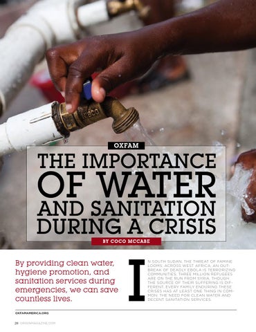 By providing clean water, hygiene promotion, and sanitation services during emergencies, we can save countless lives. OXFAMAMERICA.ORG 28 ORIGINMAGAZINE.COM