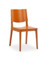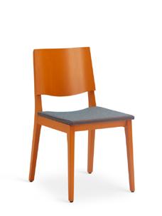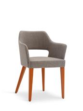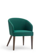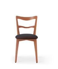 Le linee arcuate e snelle dello schienale, sono incorniciate da un telaio in legno massello, dalle forme morbidamente stondate, che crea una calda sensazione e un senso di continuità con la struttura e le gambe. Una soluzione costruttiva che diventa elemento caratterizzante di una completa proposta di sedie impilabili, poltroncine, sgabelli, poltrone con o senza braccioli, divanetti, tutti personalizzabili nei rivestimenti e nelle finiture.