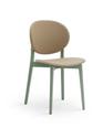 In molte forme un bordino, realizzato con lo stesso o con altri rivestimenti, corre sul perimetro esterno della scocca impreziosendo la tappezzeria. Gli schienali si possono abbinare a diverse tipologie di sedile: “Soft Seat”, elegante e lineare; “Curved Seat”, di forma curvata, interamente rivestito o con legno a vista; “Slim Seat”, compatto e rivestito per intero o con legno a vista; “Round Seat”, di forma tondeggiante. Le basi possono essere in legno (faggio, rovere e frassino) o in metallo (a 4 gambe, a 4 razze con seduta fissa, a 4 razze con seduta girevole, a 4 razze con seduta fissa e ruote).