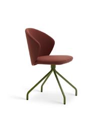 “Soft Seat”, linear and elegant; “Curved Seat”, fully covered or with exposed wood; “Slim Seat”, compact, fully covered or with exposed wood; “Round Seat”, with a rounded shape. The bases can be wooden (beech, oak and ash) or metal (with four legs, a four-star base with fixed seat, a fourstar base with swivel seat, or a four-star base with casters and a fixed seat). A stool base in wood or metal completes this extremely flexible collection.