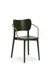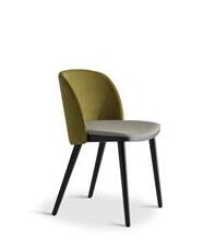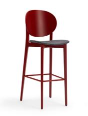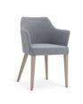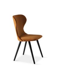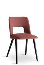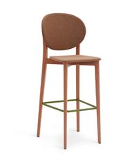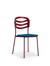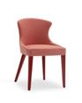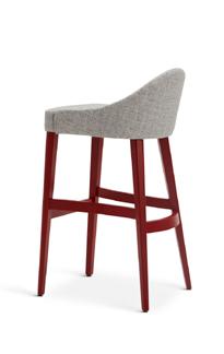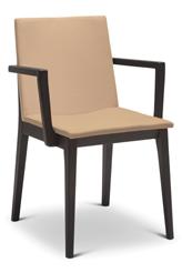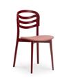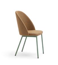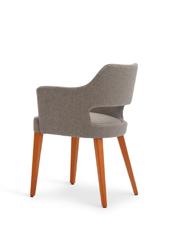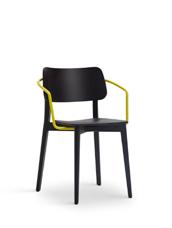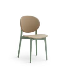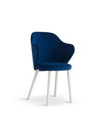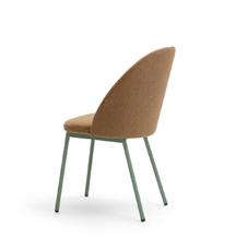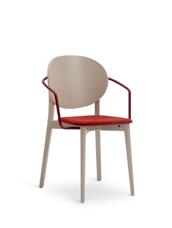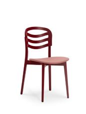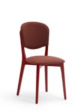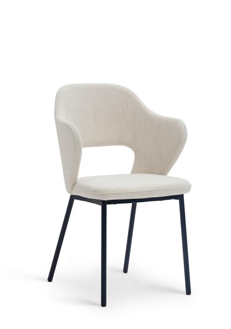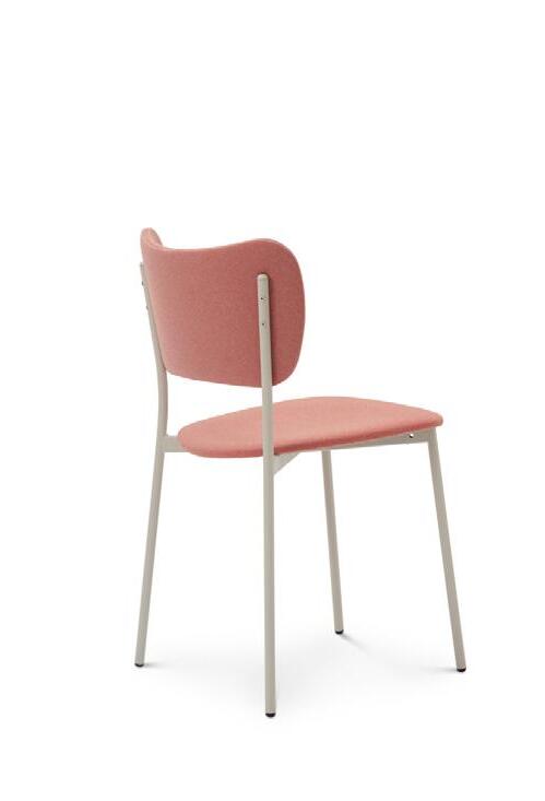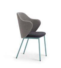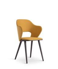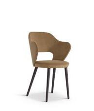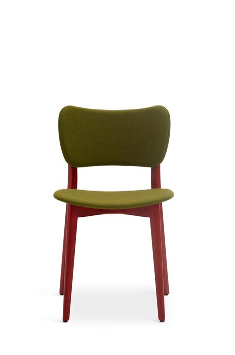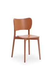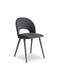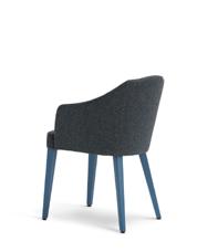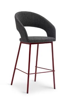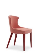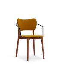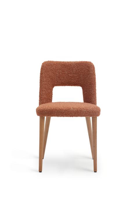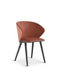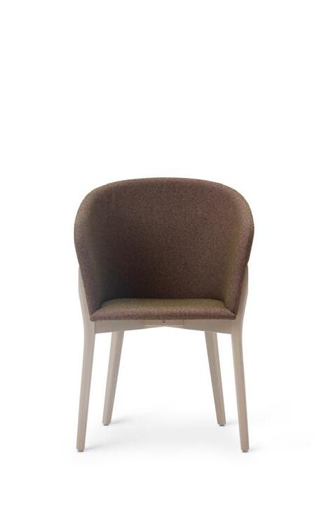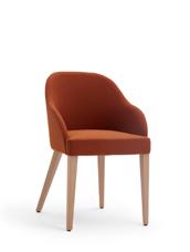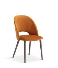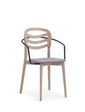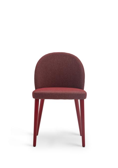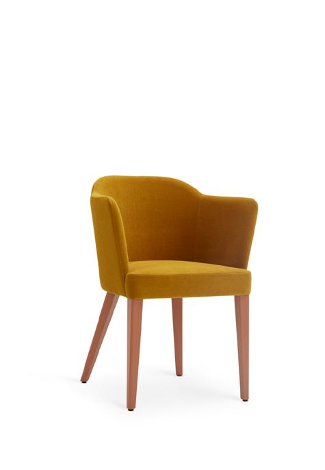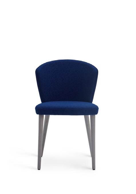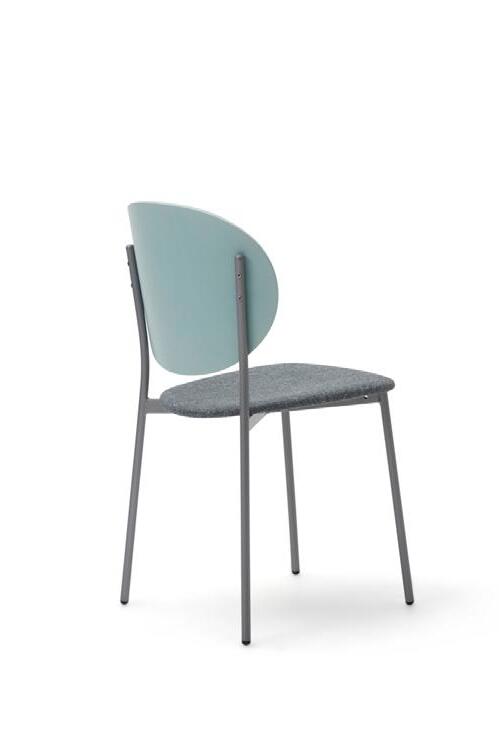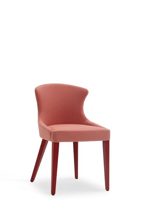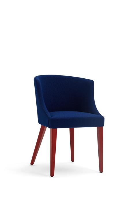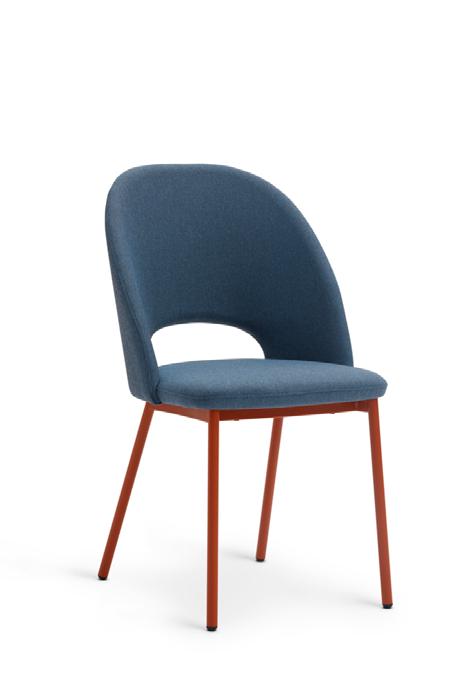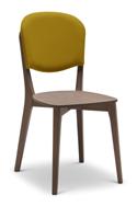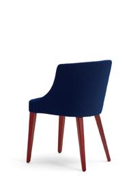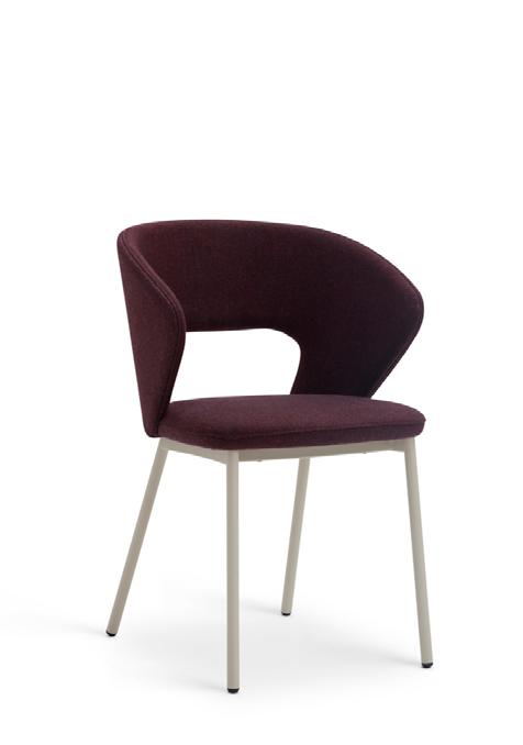 Le linee arcuate e snelle dello schienale, sono incorniciate da un telaio in legno massello, dalle forme morbidamente stondate, che crea una calda sensazione e un senso di continuità con la struttura e le gambe. Una soluzione costruttiva che diventa elemento caratterizzante di una completa proposta di sedie impilabili, poltroncine, sgabelli, poltrone con o senza braccioli, divanetti, tutti personalizzabili nei rivestimenti e nelle finiture.
