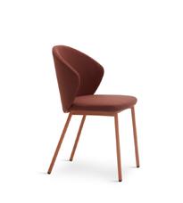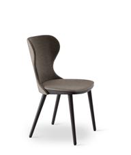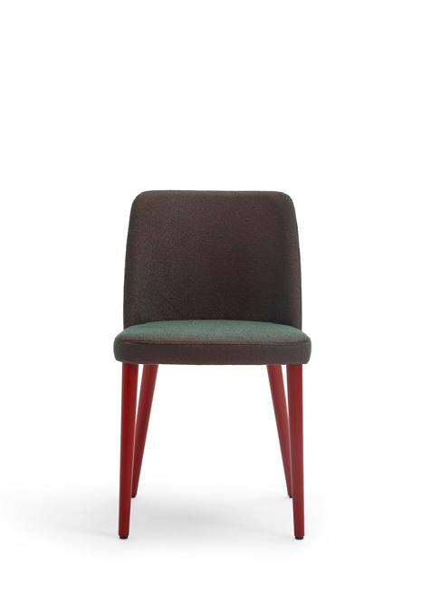 L’idée d’une coque enveloppante, fine et légère, proposée en 15 variations de forme : compacte (Tam, Uma, Chloe, Dixie), plus enveloppante (Reed, Bold, Meggie), importante (Grace, Hope), élancée (Anya, Sati) et petit fauteuil (Ellis, Fard, Page, Quinn). L’ouverture latérale ou arrière facilite la prise et le nettoyage de l’assise. Dans de nombreuses versions, une ganse réalisée avec le même revêtement ou en contraste souligne le périmètre extérieur de la coque en embellissant la tapisserie. Les dossiers peuvent être associés à différents types d’assises : « Slim Seat », élégant et linéaire ; « Curved Seat », de forme courbe, entièrement revêtue ou avec bois apparent; « Slim Seat », compacte et entièrement revêtue ou avec bois apparent; « Round Seat », de forme arrondie. Les piètements peuvent être en bois (hêtre, chêne et frêne) ou en métal (à 4 pieds, à 4 branches avec siège fixe, à 4 branches avec siège pivotant, à 4 branches avec siège fixe et roulettes). Une base pour tabouret, en bois ou métal, complète cette proposition caractérisée par une grande flexibilité.