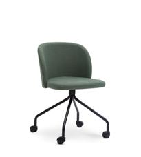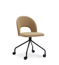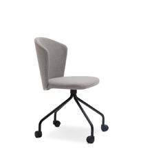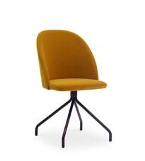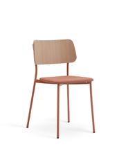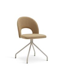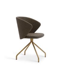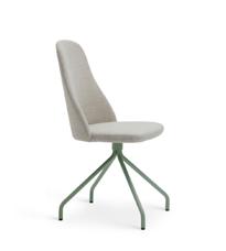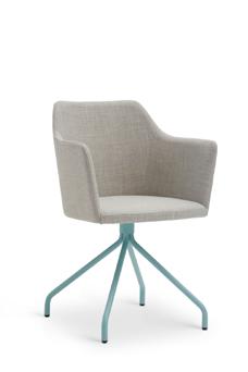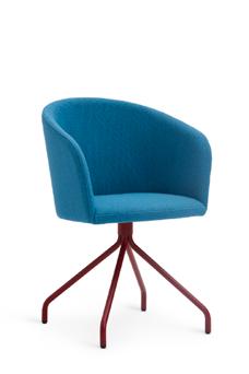 “Soft Seat”, linear and elegant; “Curved Seat”, fully covered or with exposed wood; “Slim Seat”, compact, fully covered or with exposed wood; “Round Seat”, with a rounded shape. The bases can be wooden (beech, oak and ash) or metal (with four legs, a four-star base with fixed seat, a fourstar base with swivel seat, or a four-star base with casters and a fixed seat). A stool base in wood or metal completes this extremely flexible collection.