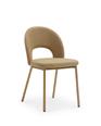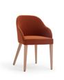 The slim, arched lines of the backrest are outlined by with a solid wood frame, with softly rounded shapes, creating a warm feeling and a sense of continuity with structure and legs. This construction is a distinctive feature of a complete range of stacking chairs, large and small armchairs, stools, slipper chairs and compact sofas, all with customisable coverings and finishes.