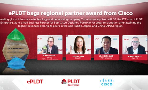 On 23 September 2021, global company Cisco recognized ePLDT, the ICT arm of PLDT Enterprise, as its Small Business Partner for Best Cisco Designed Portfolio for program adoption. ePLDT had attained the highest revenues among its peers in the Asia Pacific, Japan, and China (“APJC”) region.