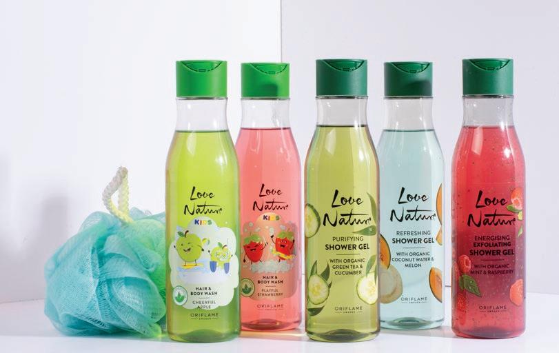Exfoliantes de Origen Natural Envases con hasta 100% de Plástico Reciclado** Biodegradable Formulas* Biodegradable* 16 17 GELES DE DUCHA Gel de Ducha Exfoliante Energizante con Menta y Frambuesa Orgánicas Love Nature 250 ml NSOC10944-21CO 41493 S/ 45.00 S/ 19.90 Puntos: 5 c/u c/u Gel de Ducha Love Nature 250 ml S/ 33.00 S/ 16.90 Puntos: 4 Esponja de Baño Elemental Polietileno reciclado. Cuerda