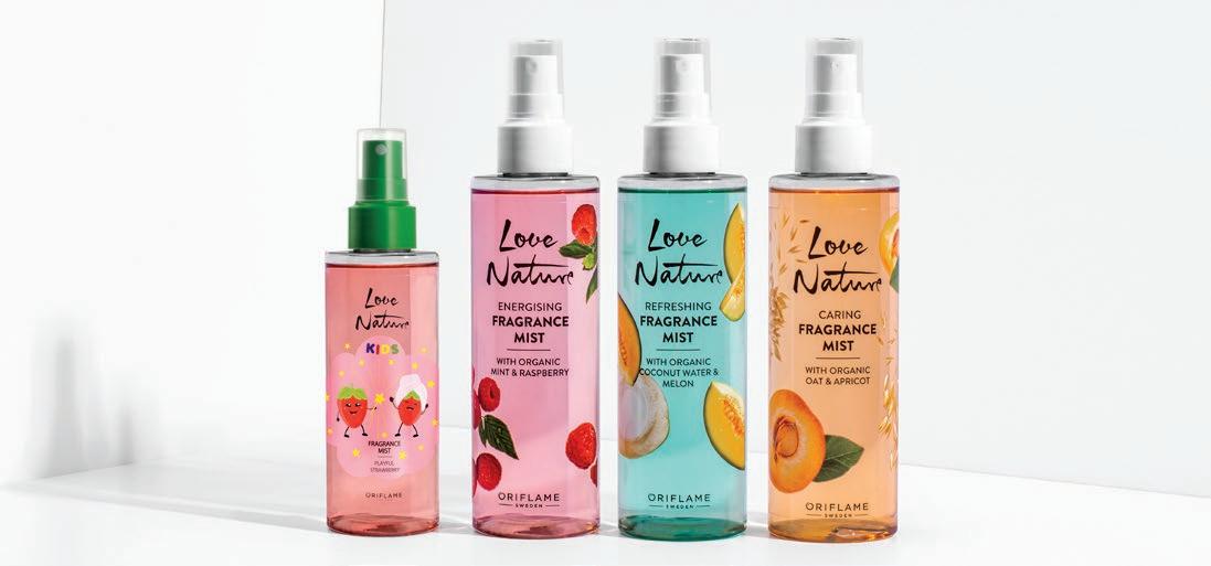 14 15 FRAGANCIAS CORPORALES Fragancias Corporales Love Nature 200 ml S/ 50.00 S/ 29.90 Puntos: 7 c/u c/u DE DESCUENTO % FRAGANCIAS CORPORALES CON EXTRACTOS ORGÁNICOS ¡ENERGÍZATE! 43954 ¡REFRÉSCATE! 43956 ¡CONSIÉNTETE! 43957 Alcohol de Origen Natural Extractos Orgánicos Envases con hasta 100% de Plástico Reciclado* *La cantidad exacta varía entre el 50 y 100%, y se muestra en cada producto. Agua de Coco y Melón Menta y Frambuesa Fresa Avena y Albaricoque Fragancia Perfumada con Fresa Love Nature Kids 100 ml NSOC1561722CO 45513 S/ 28.00 S/ 14.90 Puntos: 3 TIP Para que tu fragancia te brinde un extra de frescura, ¡guárdala en la refrigeradora! 50 HASTA 100 ml 200 ml ¡DIVIÉRTETE! 45513 NUEVA PARA NIÑOS SIN ALCOHOL NSOC11111-21CO NSOC11060-21CO NSOC11062-21CO
