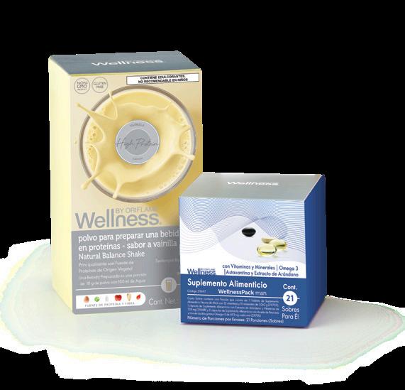 23 WELLNESS Malteada Natural Balance1 + Suplemento Alimenticio2 PACK 802110MUJER Pack + Fresa. 802111 Pack + Vainilla. 802112 Pack + Chocolate. 802113 Pack Mujer + Natural. PACK 802114HOMBRE Pack + Fresa. 802115 Pack + Vainilla. 802116 Pack + Chocolate. 802117 Pack Hombre + Natural. $480.10GANANCIAPRECIO EXCLUSIVO** Precio Catálogo: $1,109.90$1,590.00 Puntos: 83.2421códigos.estosdeunidadcadaporválidaPromociónEsteproductonosustituyeunaalimentaciónbalanceada.Esteproductonoesunmedicamento. SISTEMA Desayuno^ 841251 1 Vainilla + 1 Vainilla. 841252 1 Chocolate + 1 Chocolate. 841262 1 Vainilla + 1 Chocolate. 2 Alimentos Nutritivos Avanzados en Polvo para Preparar Bebidas1 SISTEMA Smart Shake^ $700.10GANANCIAPRECIO EXCLUSIVO** Precio Catálogo: $1,599.90$2,300.00 Puntos: 119.99 1 Alimento Nutritivo Avanzado en Polvo para Preparar Bebidas1 + 1 Suplemento Alimenticio2 PACK 803043MUJER Vainilla + Pack. 803044 Chocolate + Pack. PACK 803046HOMBRE Chocolate + Pack. 803045 Vainilla + Pack. $590.10GANANCIAPRECIO EXCLUSIVO** Precio Catálogo: $1,359.90$1,950.00 Puntos: 101.99 ^Sistema Wellness participante en el Programa de Lealtad Wellness SISTEMA PROGRAMANutrición^DELEALTADWELLNESSBYORIFLAME COMPRA 1 PRODUCTO O SISTEMA WELLNESS POR 3 CAMPAÑAS SEGUIDAS Y EN TU 4 TA. CAMPAÑA LLÉVATELO ¡GRATIS! ESCANEA EL CÓDIGO QR PARA CONSULTAR INFORMACIÓNMÁS