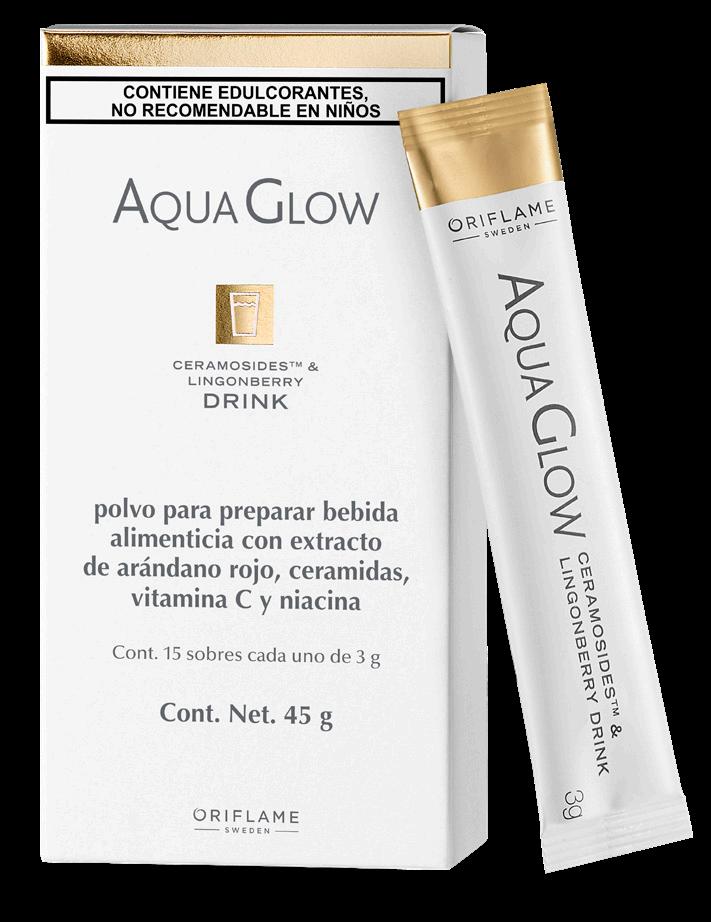^^Pruebas de consumidores independientes, Ayton Global Research 2020. Muestra: 71 mujeres participantes de 30 a 60 años en el Reino Unido consumieron Aqua Glow (una bebida al día) durante 28 días. Los resultados individuales pueden variar.