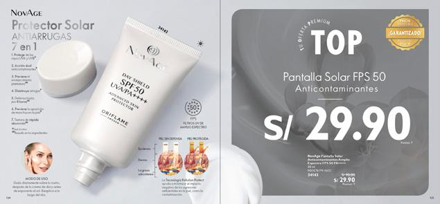 Oriflame Latinoamérica @pe.oriflame /Oriflame ¿Aún no eres parte de Oriflame? Conoce más y únete en www.oriflame.pe Usted es atendid@ por Teléfono: 7 en 1 Protector Solar ANTIARRUGAS FPS FILTROS UV DE AMPLIO ESPECTRO TOP TU O F ERTAPRE M I UM Puntos: 7 Precio Exclusivo* S/22.43 * Precio Neto Emprendedor Asociado. PANTALLA SOLAR ANTICONTAMINANTES AMPLIO ESPECTRO FPS 50 PA++++ . 30 ml NS0C76174-16CO CÓD. 34143 ¡GARANTIZADO! PRECIO IRREPETIBLE PRODUCTO DE LUJO ¿A QUIÉNES PUEDES OFRECER EL PRODUCTO DE CATÁLOGO 02? ¡OFERTA ESPECIAL EN CATÁLOGO! • ¡Crea un reto de uso para este producto!, dile a tus clientes que lo usen durante 21 días y noten el cambio en su rostro. • Durante tus presentaciones habla sobre los efectos dañinos que el sol puede tener en la piel, sobre todo cuando no se protege. •Aprende y estudia los beneficios del protector solar antiarrugas, encuéntralas en el Catálogo 2, págs. 134-135. Encuéntrala en las págs. 134-135 de Catálogo 02.