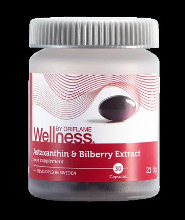 Cápsula Blanda de 728 mg contiene:Astaxantina 5% polvo (Haematococcus pluvialis L.) 60 mg (equivale a 3 mg de Astaxantina) y Extracto de Arándano 4:1 (Vaccinum myrtillus L.) 50 mg. Recomendada en adultos: Tomar 1 cápsula al día por vía Oral. No exceder la dosis diaria recomendada. Advertencias: No usar si el precinto de seguridad está roto o no tiene. Los productos dietéticos no deben tomarse como sustitutos de una dieta equilibrada. Consulta a tu médico en caso de enfermedad, si estás embarazada o con intención de estarlo. Manténgase fuera del alcance de los niños. Conservar en su envase original a temperatura no mayor a 30°C, protegidas de la luz y el