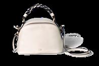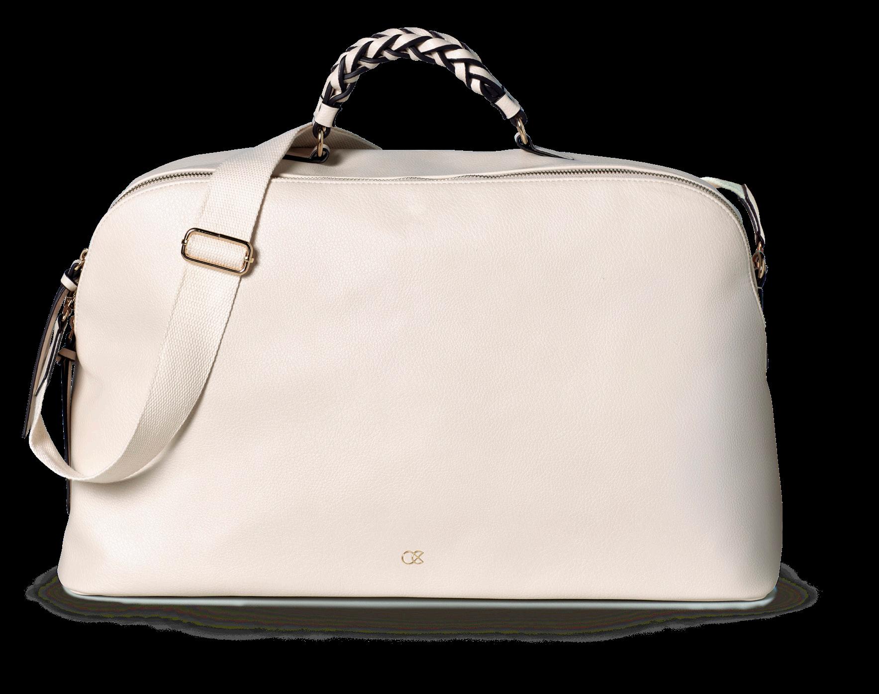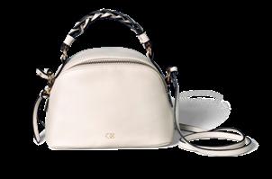 • Color marfil texturizado con bordes en marrón oscuro y herrajes dorados.