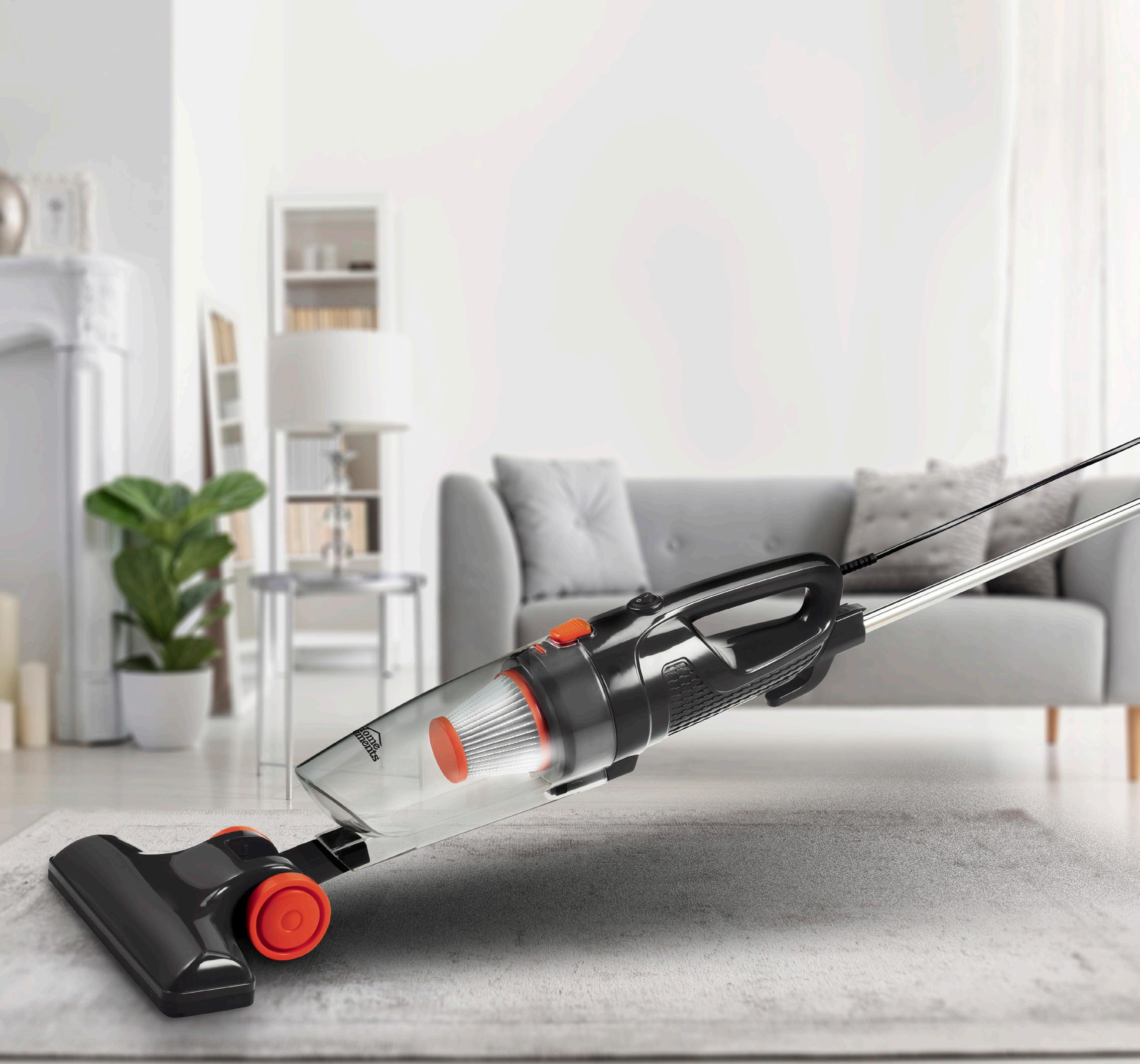 Cambia rápidamente al modo portátil y úsala con una sola mano. Adecuada para alfombras de pelo corto, suelos de mármol y madera.