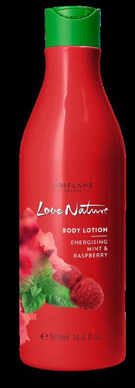 15 Crema Corporal con Menta y Frambuesa Love Nature Tamaño Grande 500 ml NSOC76741-17CO 500 unidades disponibles 42965 S/57.00 S/ 19.90 CREMA CORPORAL ENERGIZANTE CON MENTA Y FRAMBUESA ½ litro Te x tura suaveycremosa