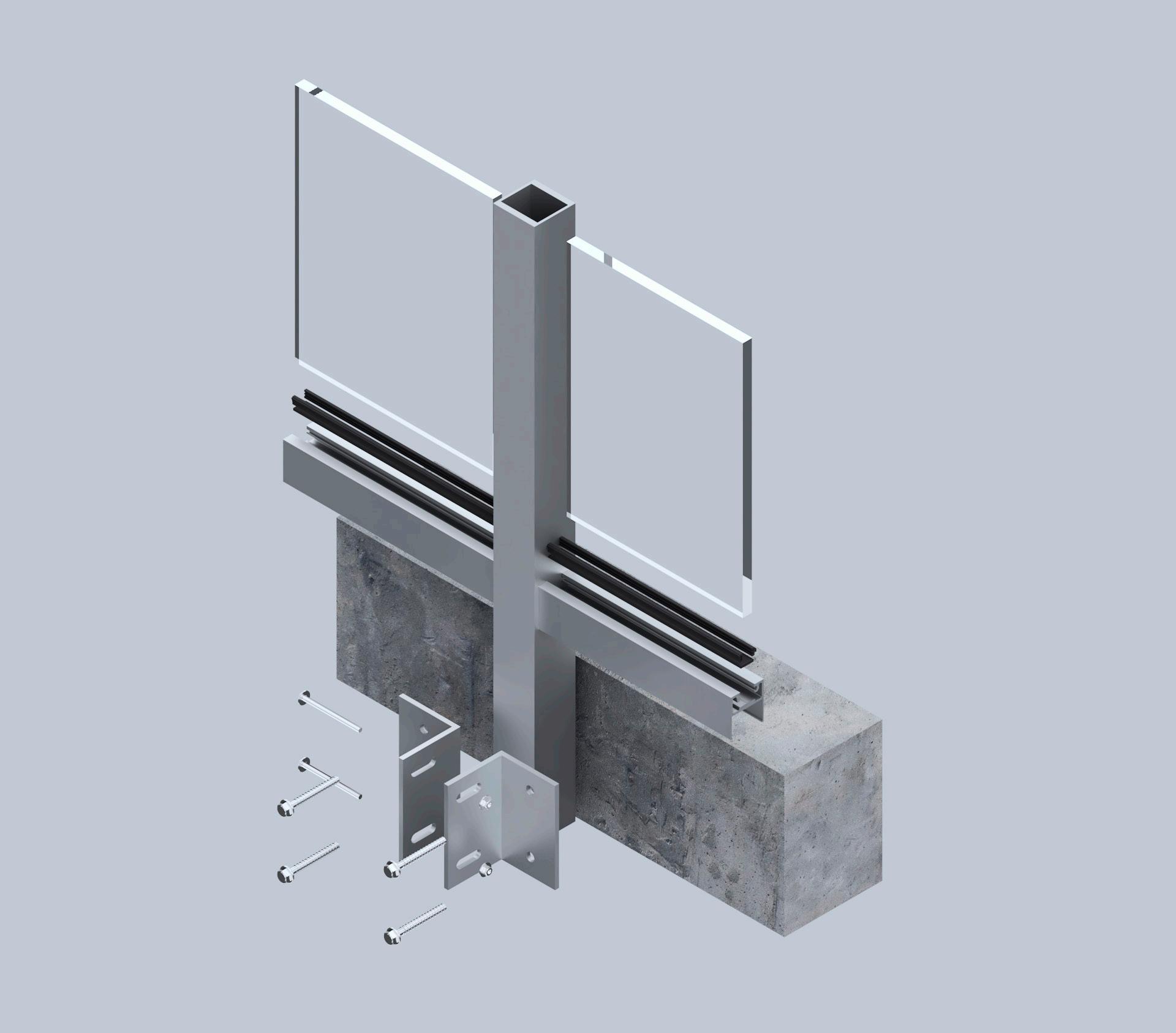 A glass railing system relies heavily on the project specifications and client requirements for proper installation. Occasionally, when the system does not require a base plate or an embed plate, a concrete curb can be used to mechanically secure the panels with angles, by drilling into the concrete curb and fastening them with screws.