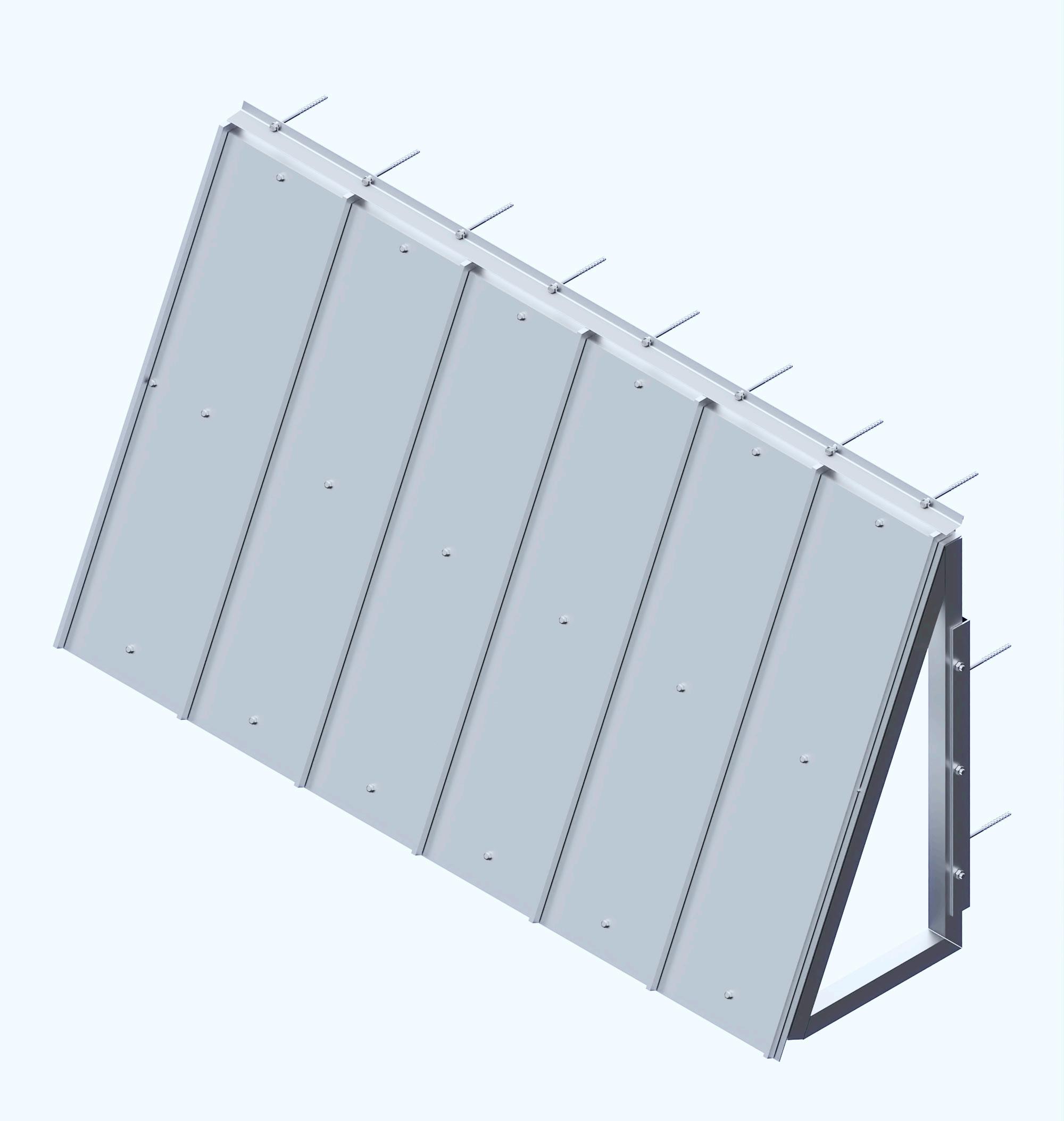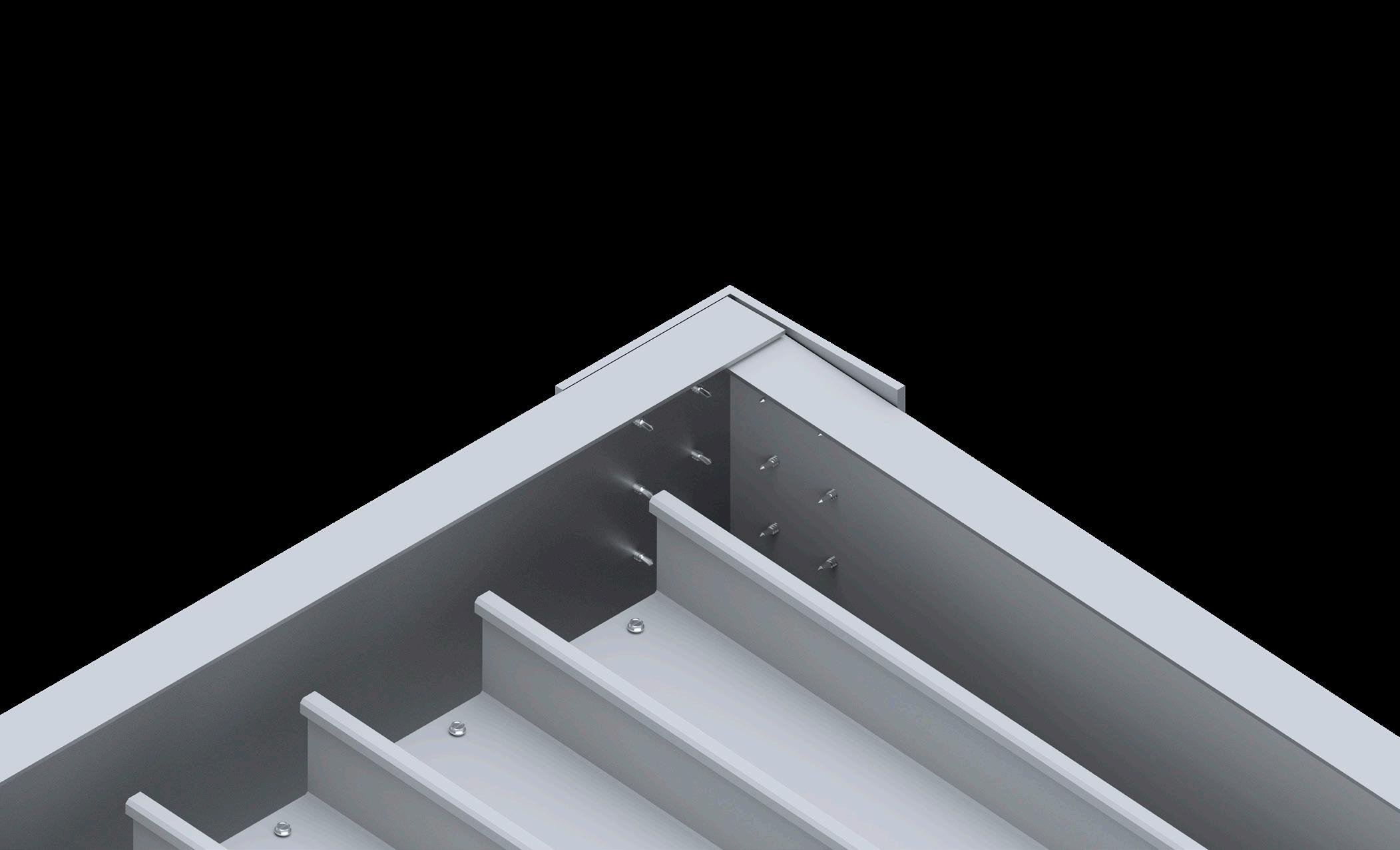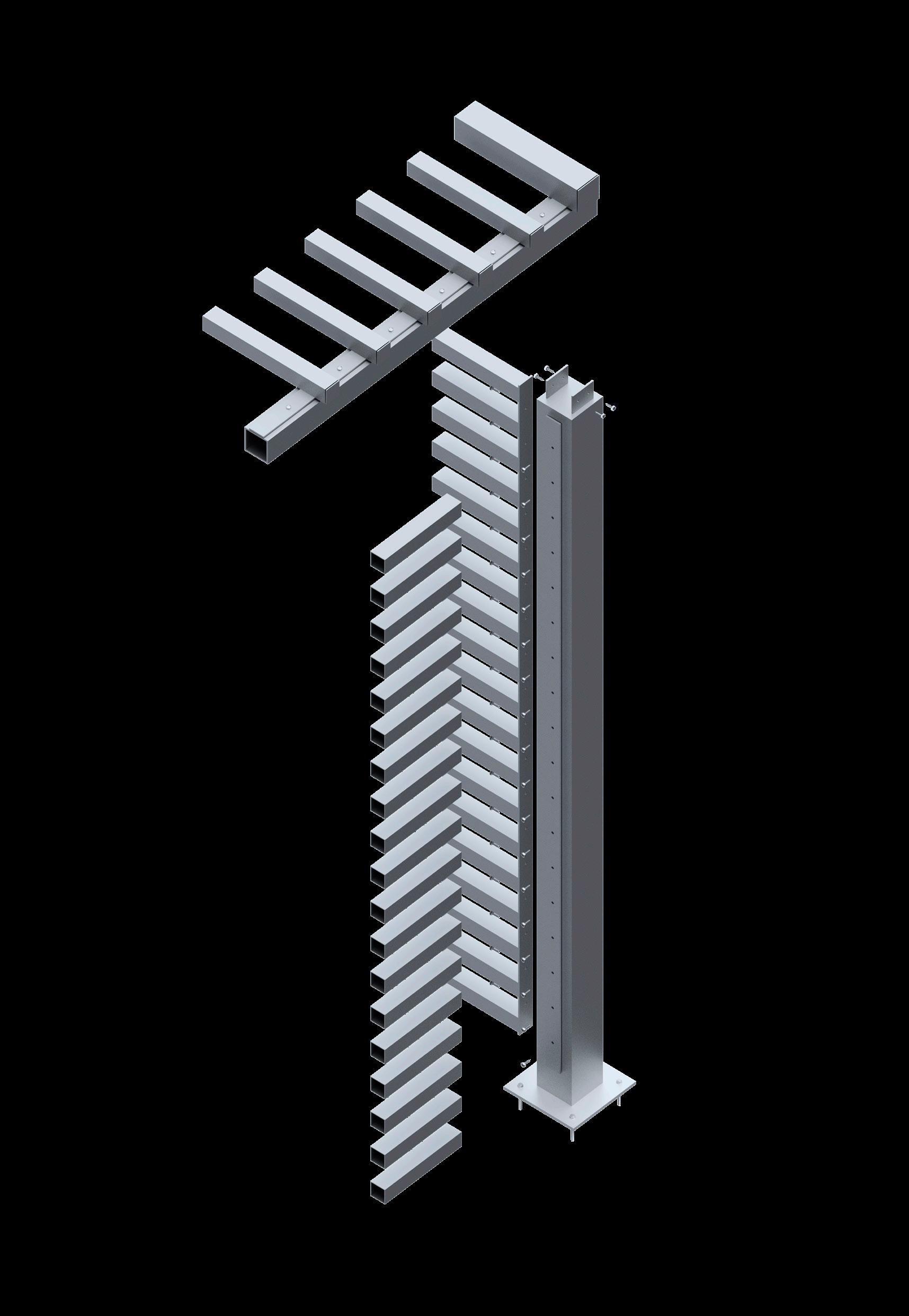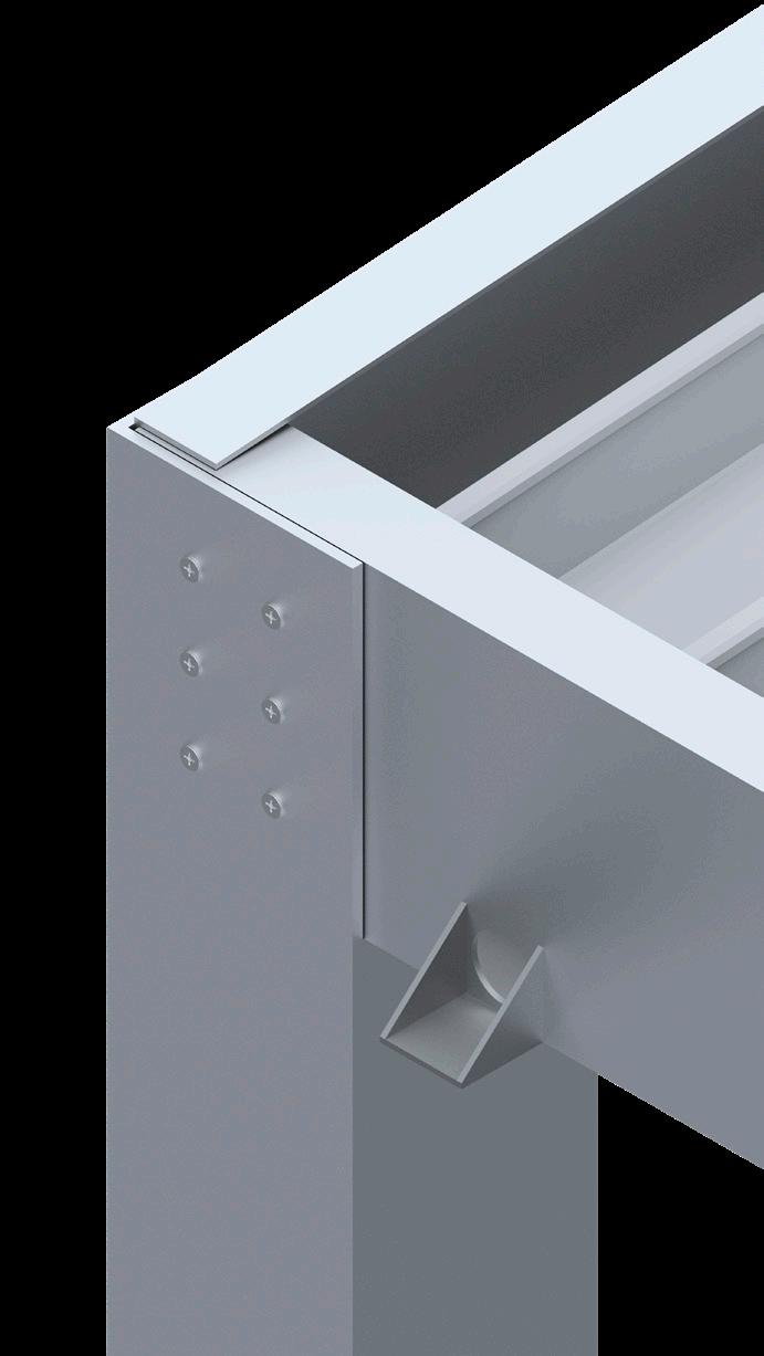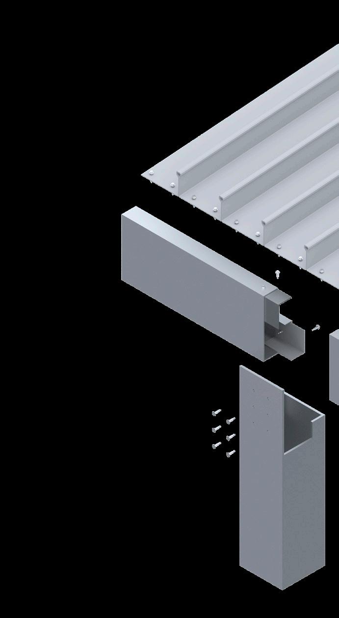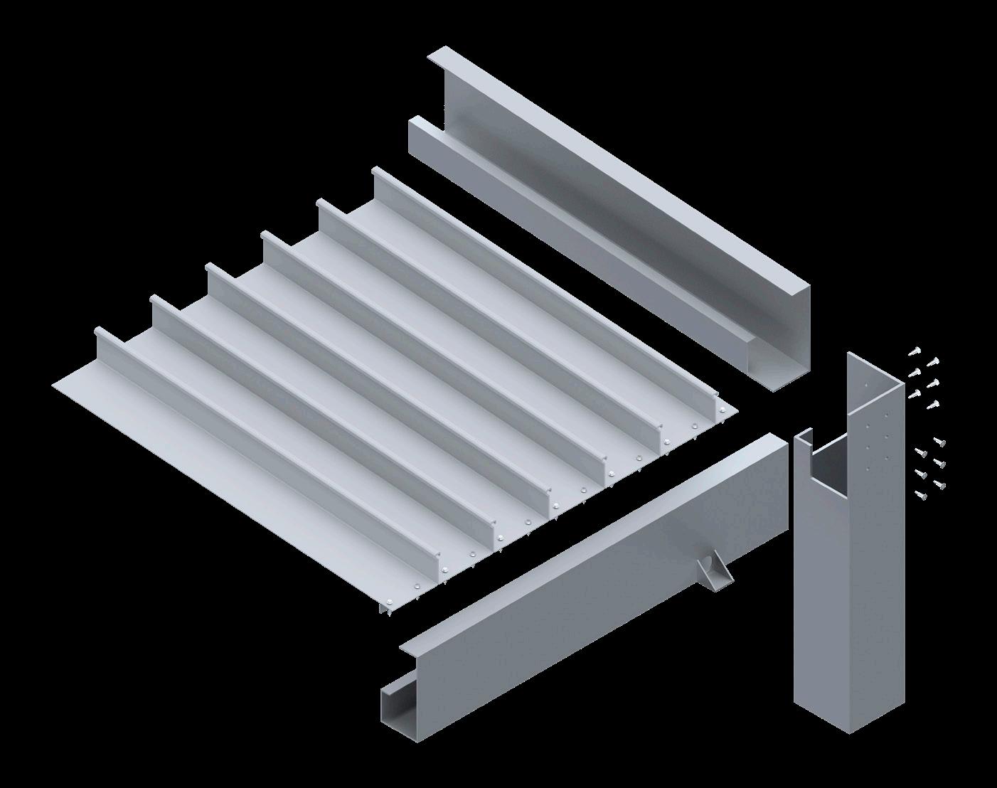 A render provides a detailed view of the mechanical joints in an aluminum trellis, helping to illustrate the precise alignment of angles and screws.