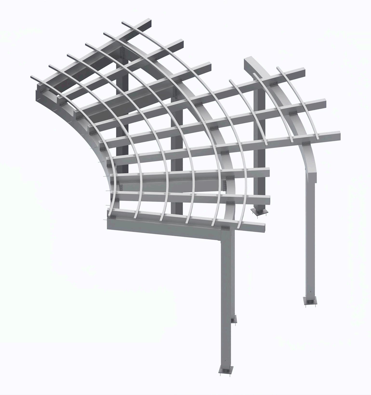 A 3D exploded view of a canopy project visually separates its components, providing clarity on design and assembly. This representation helps clients, engineers, and builders understand the spatial relationships between elements, facilitating discussions on materials and construction techniques. It enhances collaboration and reduces errors during fabrication and installation, while also serving as a marketing tool to showcase the design’s complexity and appeal.