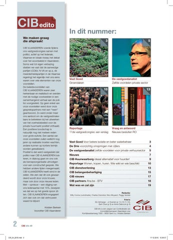 Redactie: Willy Coninx (coördinatie), Charles Dutordoir, Nico Moyaert, Peggy Verzele Foto’s: Els Verhaege - JJ Soenen (p 1,5,10,11,12), Bart Cloet (p 3) en Anne Deknock (p 4) CIB Info is een uitgave van Confederatie van Immobiliënberoepen Vlaanderen vzw Kortrijksesteenweg 1005 – 9000 Gent v.u.: Kristien Berkein