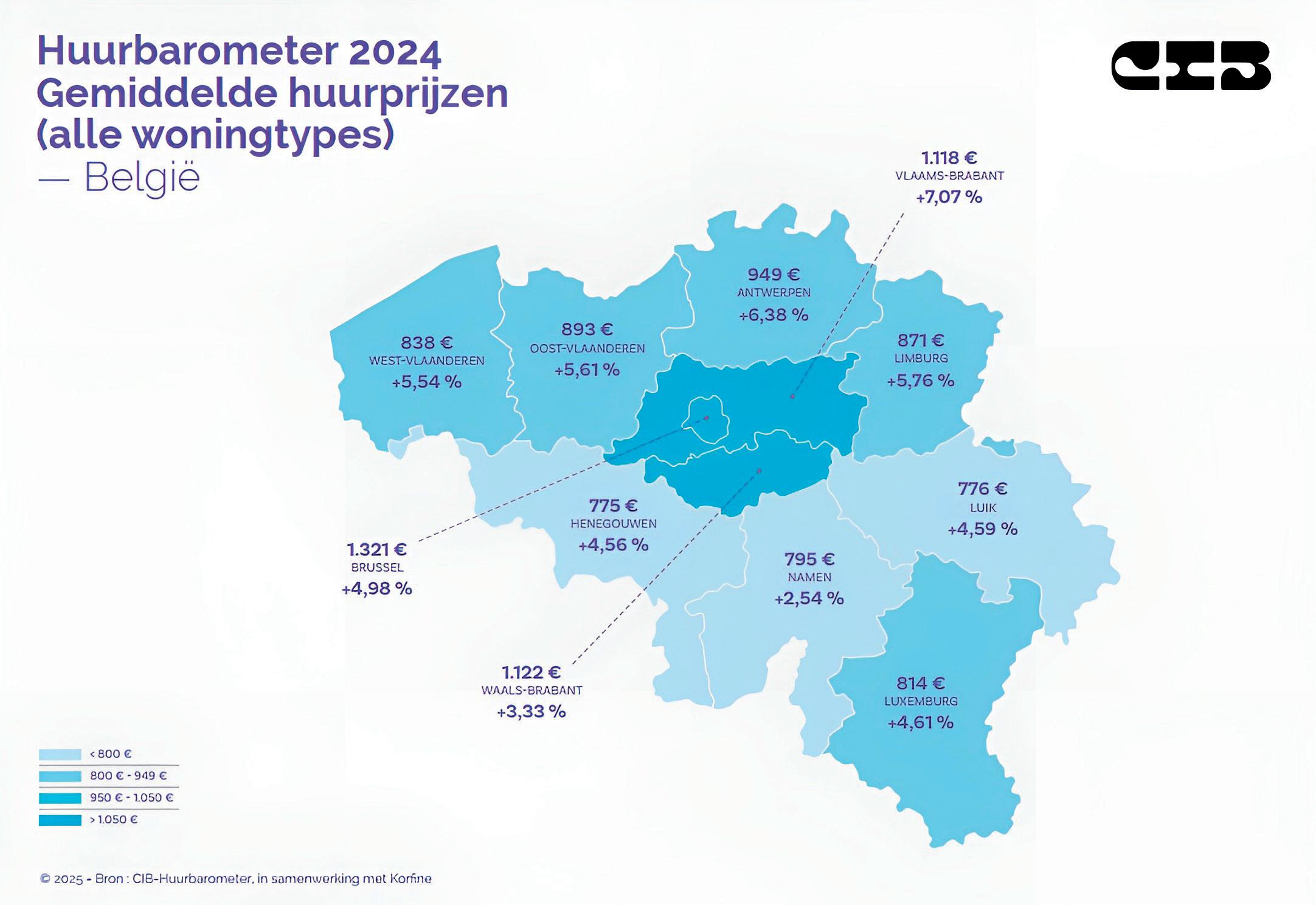 Onze huurmarkt staat onder druk en laat dat nog een understatement zijn. Waar we na corona vanuit de steden steeds meer geluiden capteerden van een toenemend aantal kandidaat-huurders is de olievlek ondertussen uitgedijd naar heel Vlaanderen. Dat zullen de bemiddelaars onder ons ongetwijfeld al gemerkt hebben. De voorbije jaren zagen we echter niet dat het toenemend aantal kandidaten een impact had op de prijszetting. De prijzen stegen wel, maar steeds op niveau van de inflatie. Uit onze meest recente Huurbarometer – die inzoomt op 2024 – zien we voor het eerst dat prijzen steviger stijgen dan inflatie. Reden genoeg dus om in deze editie stil te staan bij onze huurmarkt.