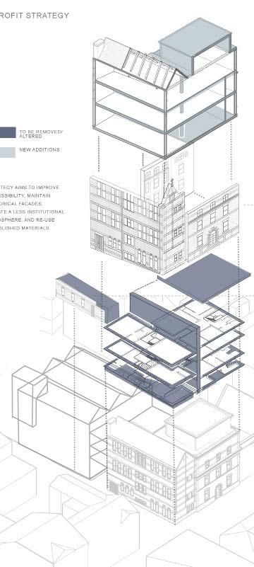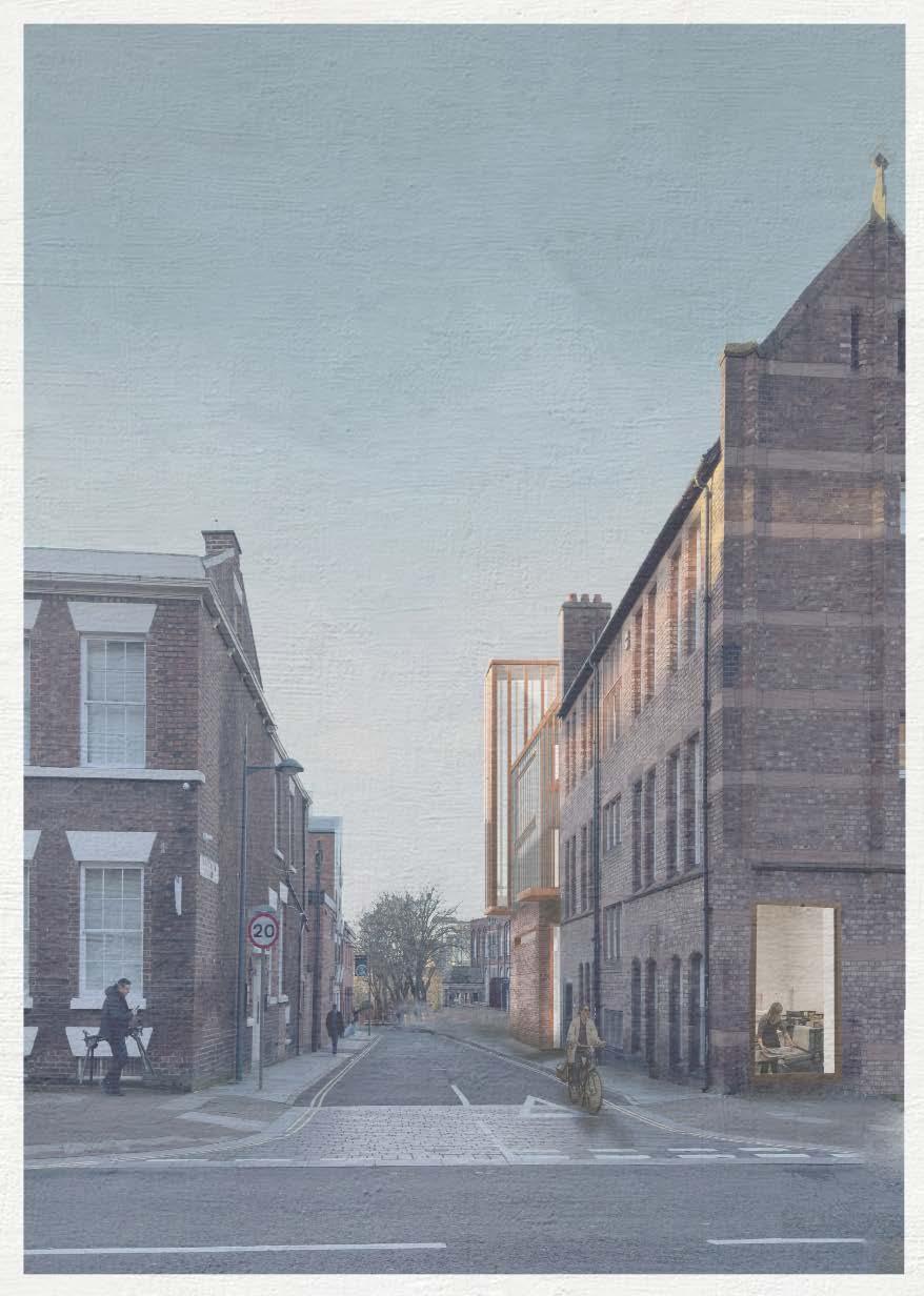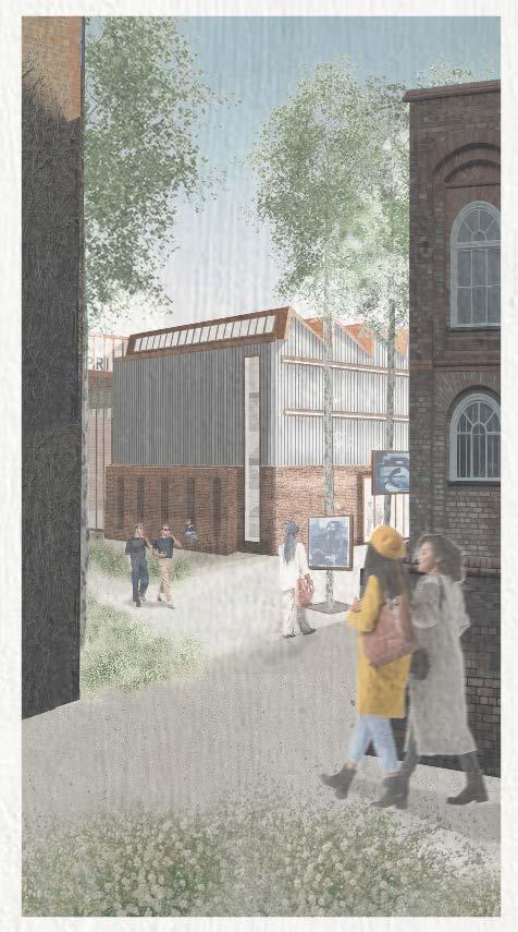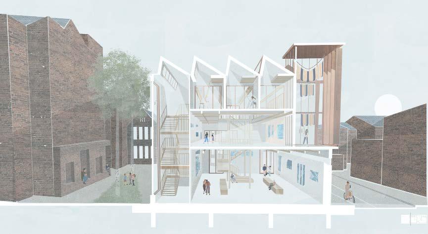 A SERIES OF LANTERNS BRIDGE THE OLD AND NEW BUILDS, WHILE PROVIDING DAYLIGHTING AND FACILITATING ENGAGEMENT BETWEEN THE WORKSHOPS AND THE PUBLIC.