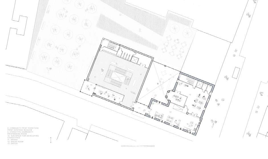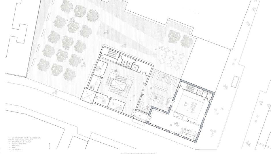WITH COMMUNITY ENGAGEMENT AND INCLUSIVITY AS THE MAIN DRIVING FORCES OF THE DESIGN, THE PROPOSAL INVITES THE PUBLIC TO PARTAKE IN PRINTMAKING AND INSTALLATIONS AS PART OF A MODERN ARTISTS’ GUILD.
