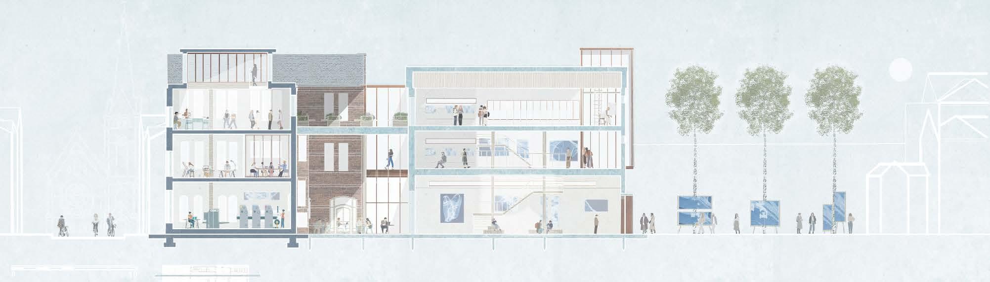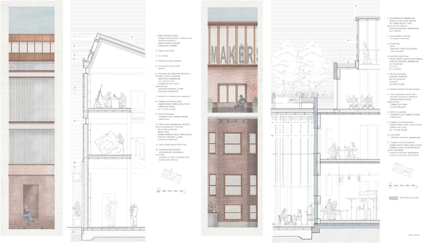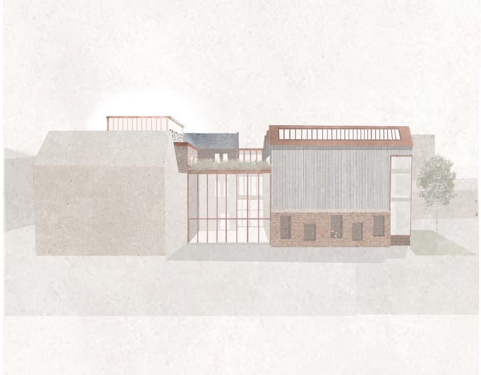 THE PRINTMAKERS GUILD SECTION THROUGH THE EXISTING AND NEW BUILD STRUCTURES