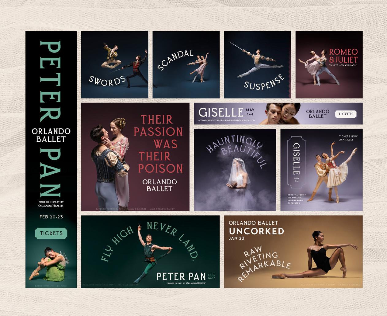 A consistent visual style elevates the Orlando Ballet brand and solidifies our reputation in the community� In all visual communication we strive for a luxurious, sophisticated, and elevated look�