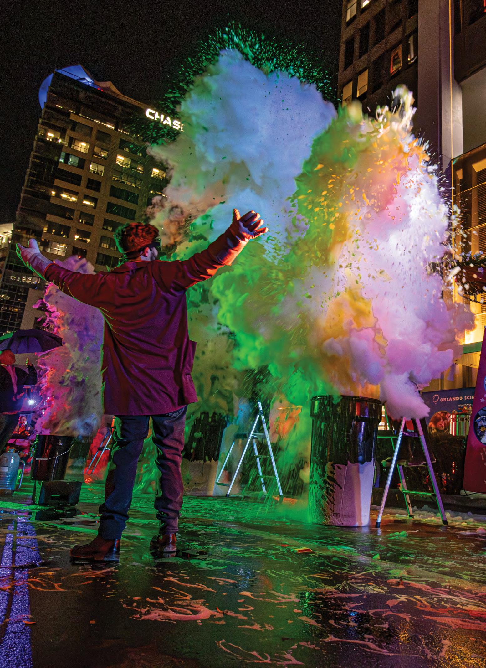 Harnessing the principles of chemistry and physics to whip up energetic, bubbly blasts that visibly demonstrated gas expansion, nucleation, and reaction rates, the Science Center brought high-octane STEM fun to downtown Orlando in February 2025.