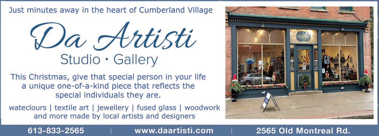 THE CUMBERLAND CHRISTMAS MARKET from 9 a.m. to 3 p.m. with over 100 vendors at four locations in Cumberland Village including the Da Artisti Studio and Gallery, 2565 Old Montreal Rd.