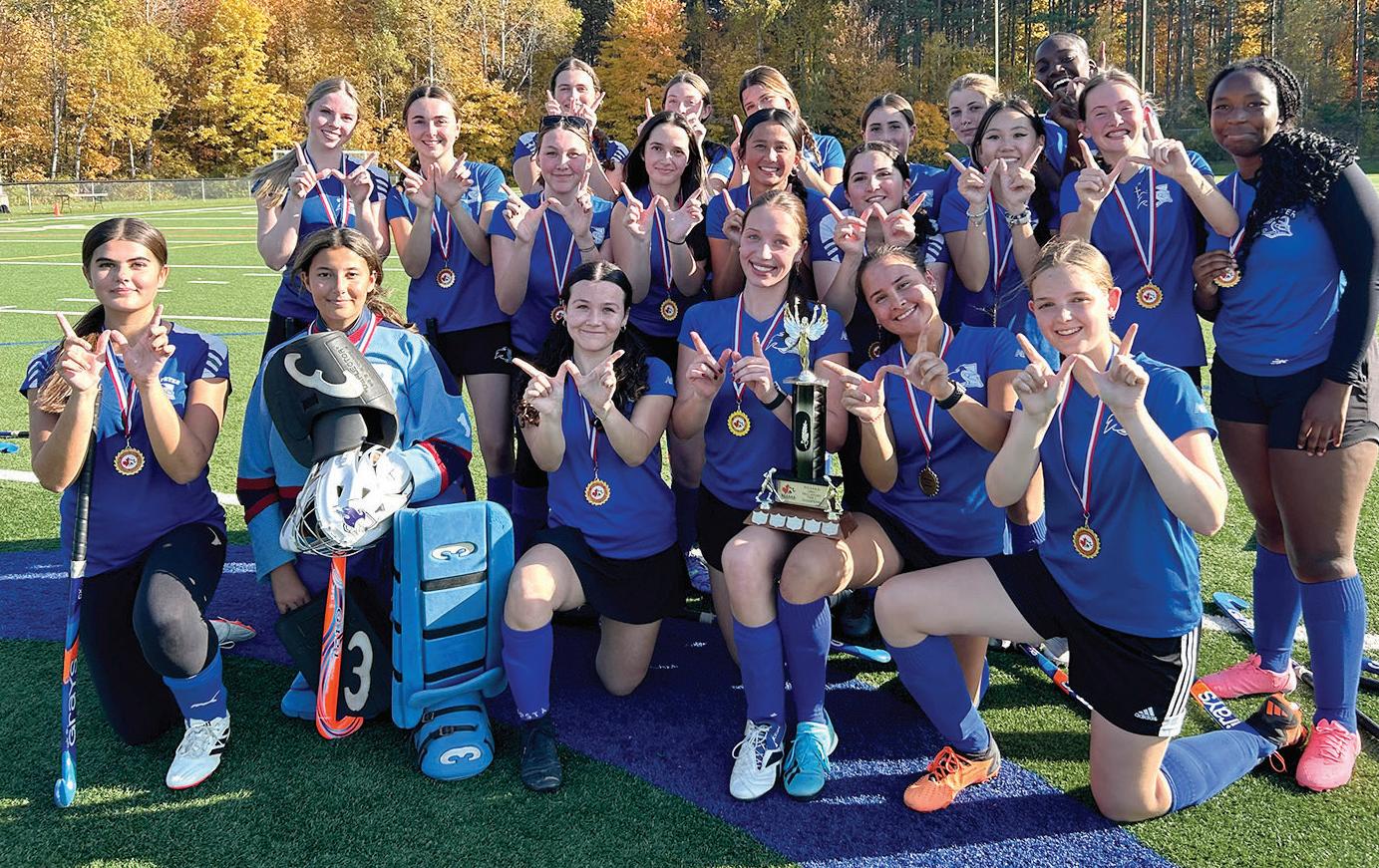 TIER 2 CHAMPIONS – The St. Peter Knights varsity girls field hockey team won the NCSSAA Tier 2 field hockey championship with a 2-1 overtime win over Maplewood Secondary School on Oct. 21. Team roster: Alyana Jiron, Amelia Quincey, Amminson Stone, Anna Rioux, Ariana Ibit, Arianna Navarro, Cadence Burleau, Chloe Watson, Dakota Kennedy, Diljin Mihammadi, Kailey Oates, Kristine Vuong, Lexi Bender, Liannah Mason, Lila Bernier, Liv Lavoie, Makenzie MacDonald, Meagan Powley, Morgan Abuthnot, Naomi Tam, Nola Fellbaum, Quinn Thompson, Sarah Mueller, Sheryl Onyancha, Surraya Dar and Sydney Deschambault.