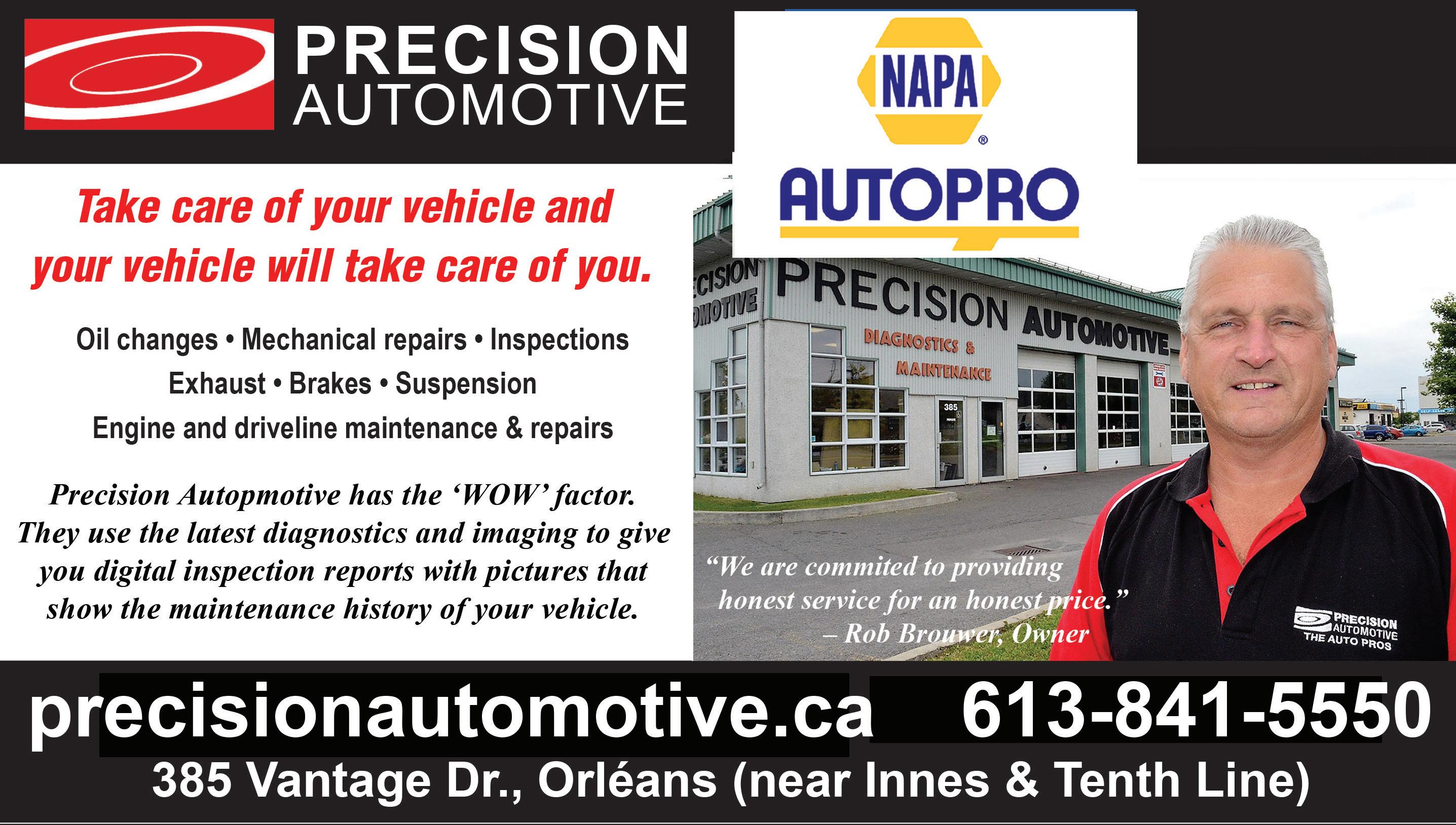 385 Vantage Dr, behind the McDonald’s restaurant at Innes and Tenth Line Road. You can visit their website at www.precisionautomotive.ca, or call them at 613-841-5550.