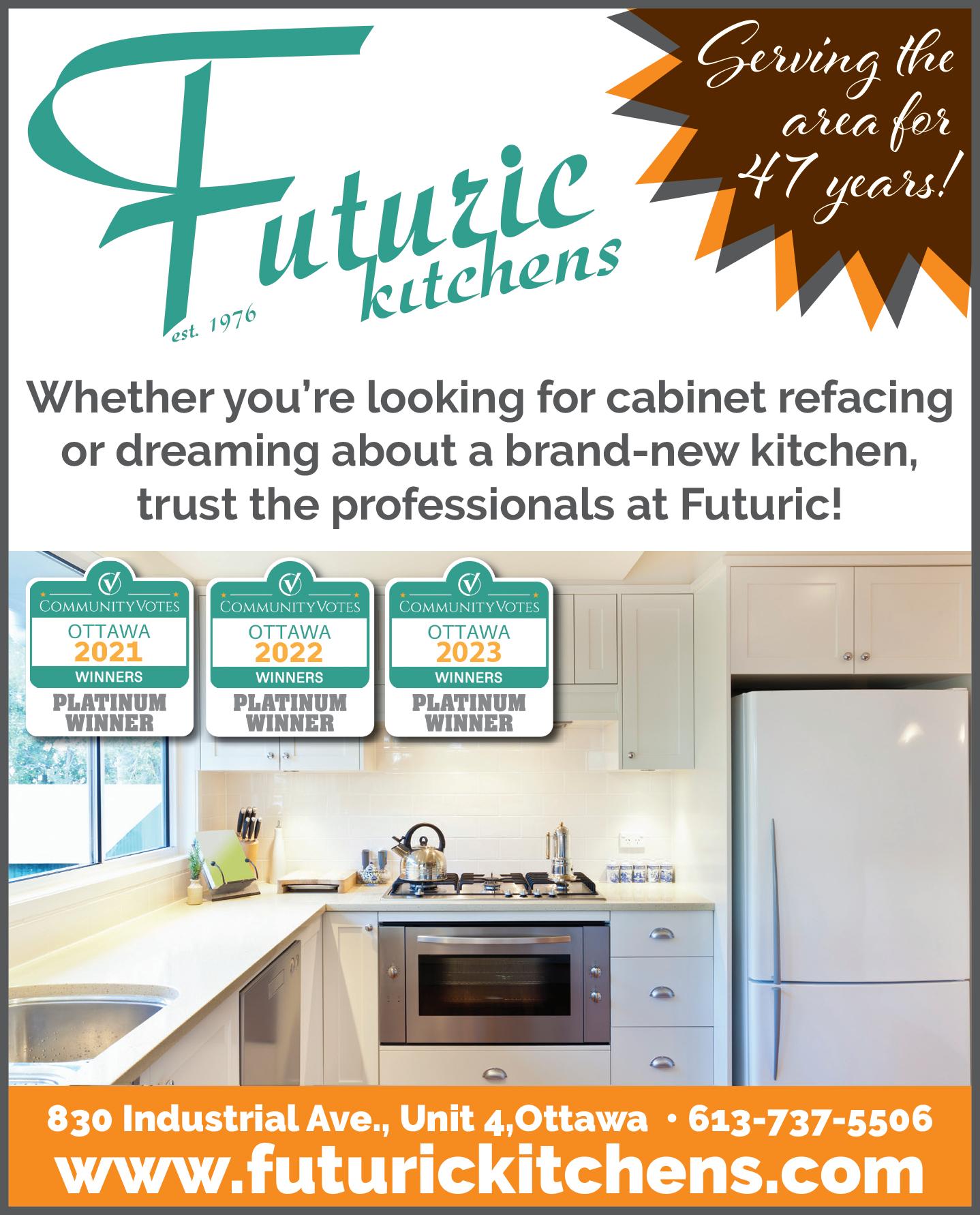 Should you want to take the next step from resurfacing to remodeling, Futuric has the expertise and know-how – from design to installation – to help make your dream a reality. Futuric was recently named a Platinum Winner in the Home, Builders and Contractors category in the 2023 Ottawa Community Votes competition.
